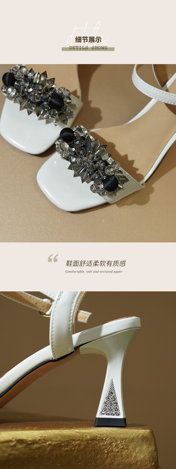 【预售5天】水钻一字带高跟鞋,细跟仙女风时尚性感露趾女鞋DS&1378-3