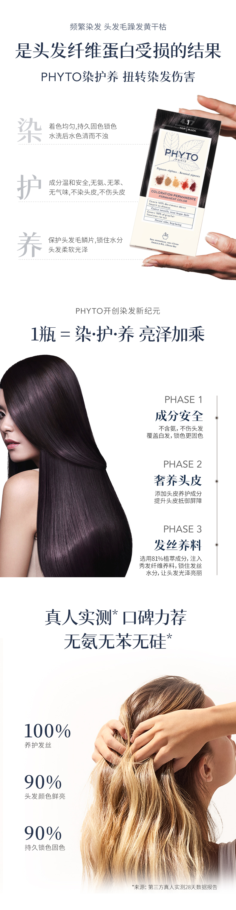 [于小戈]PHYTO发朵植物染发剂 家用染发剂 法国进口多色可选