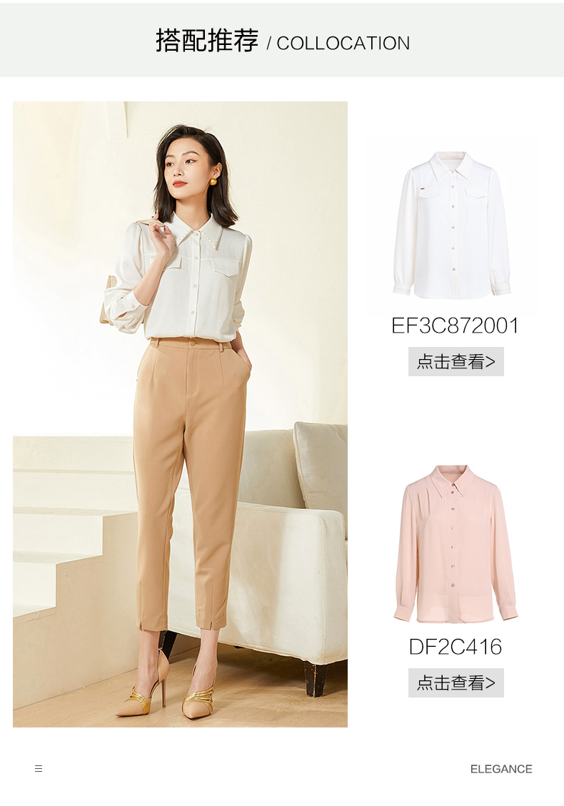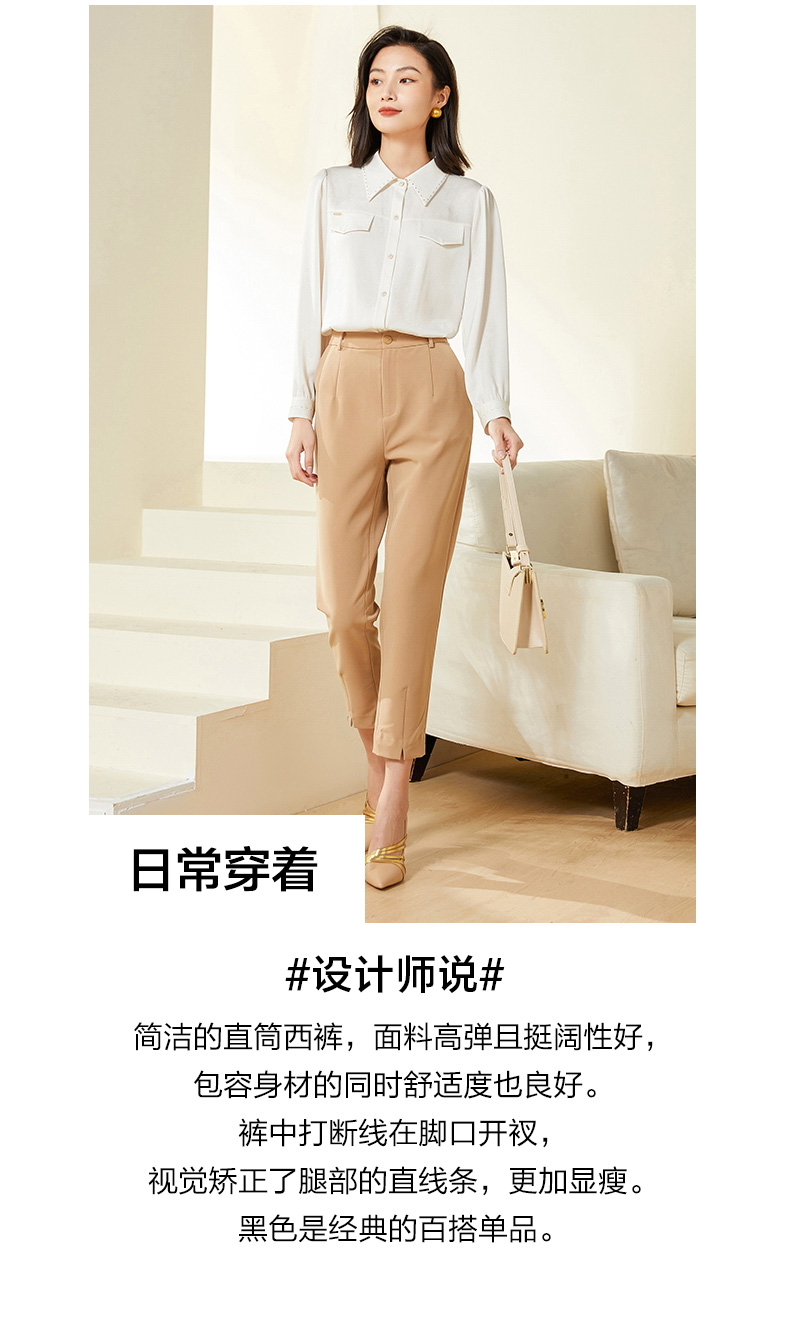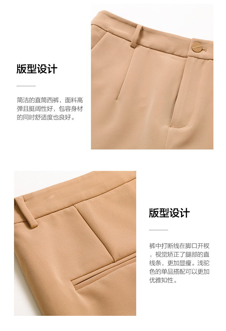 乔万尼裤子女小个子新款卡其色宽松显瘦锥形西装裤EF3F891