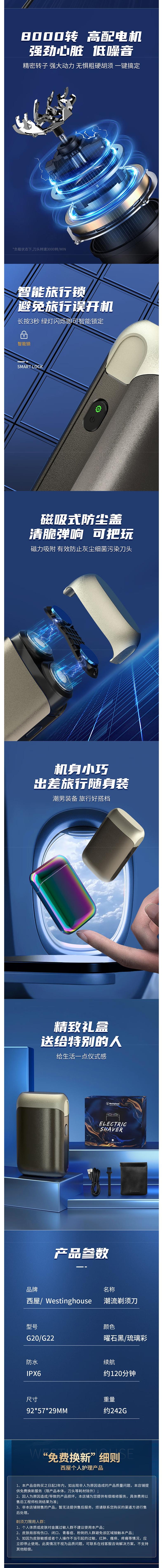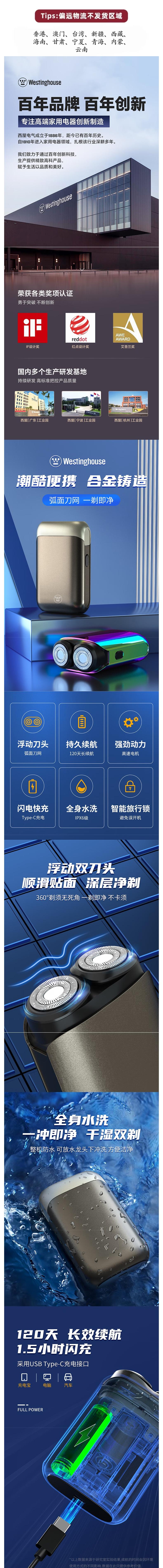 西屋 剃须刀续航时间120分钟 G20