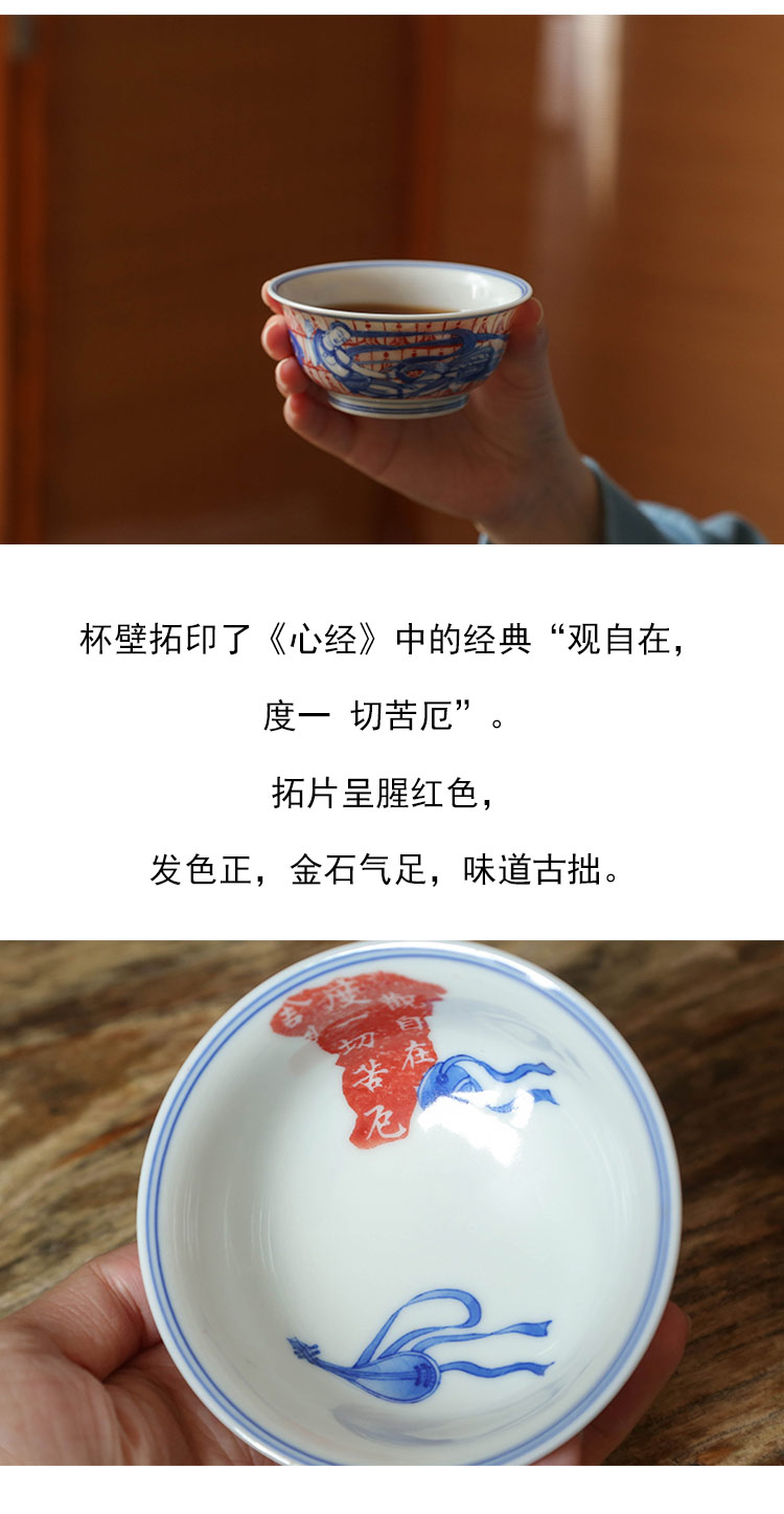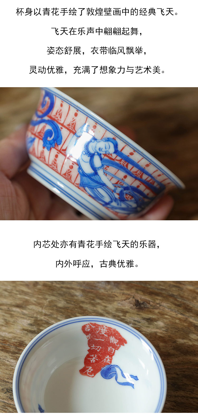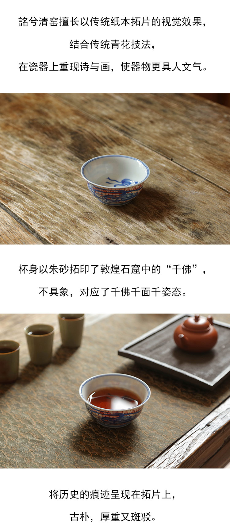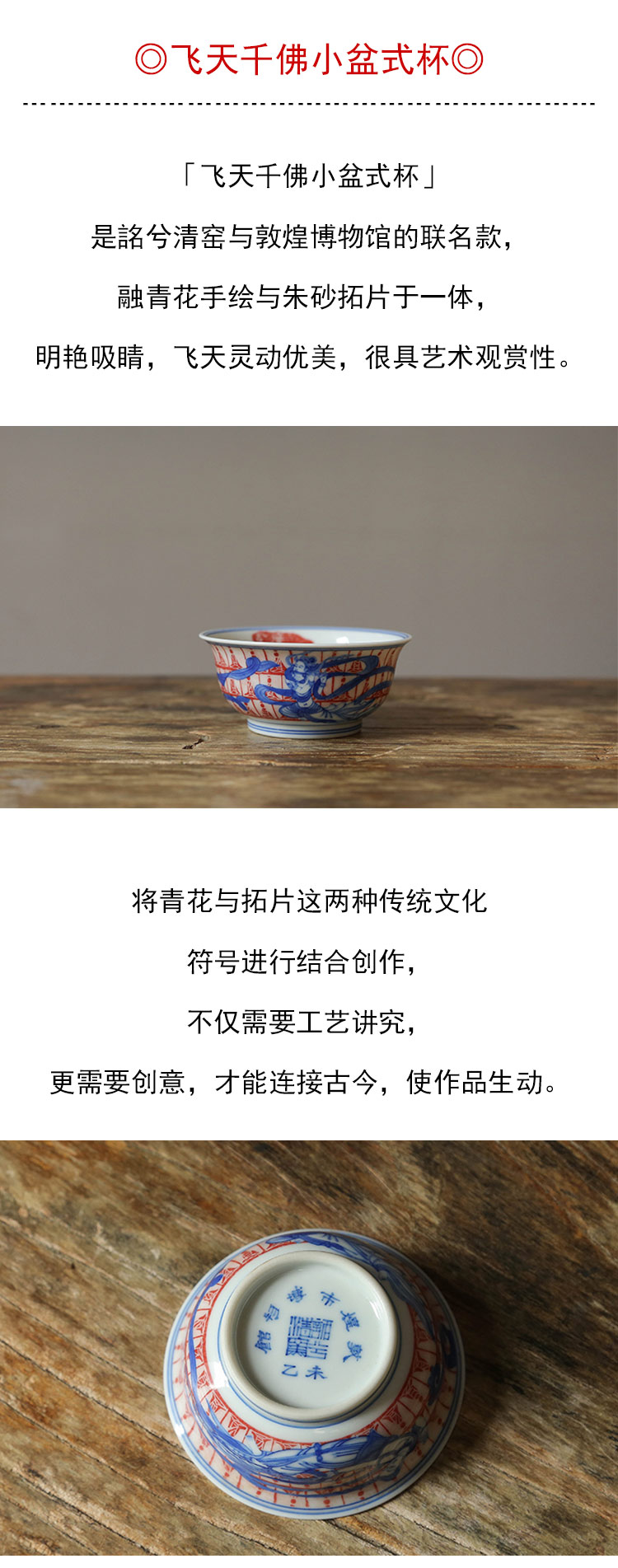 茶香记 90ml詺兮清窑飞天千佛小盆式杯敦煌联名青花手绘朱砂拓片