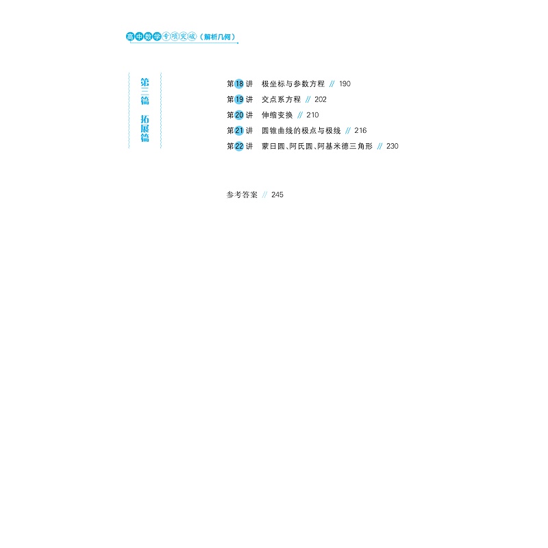 书名:高中数学专项突破(解析几何) ISBN:9787308269377 作者:张蕴禄内容提要:
