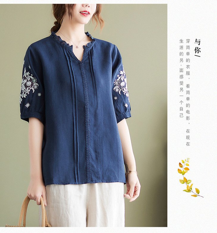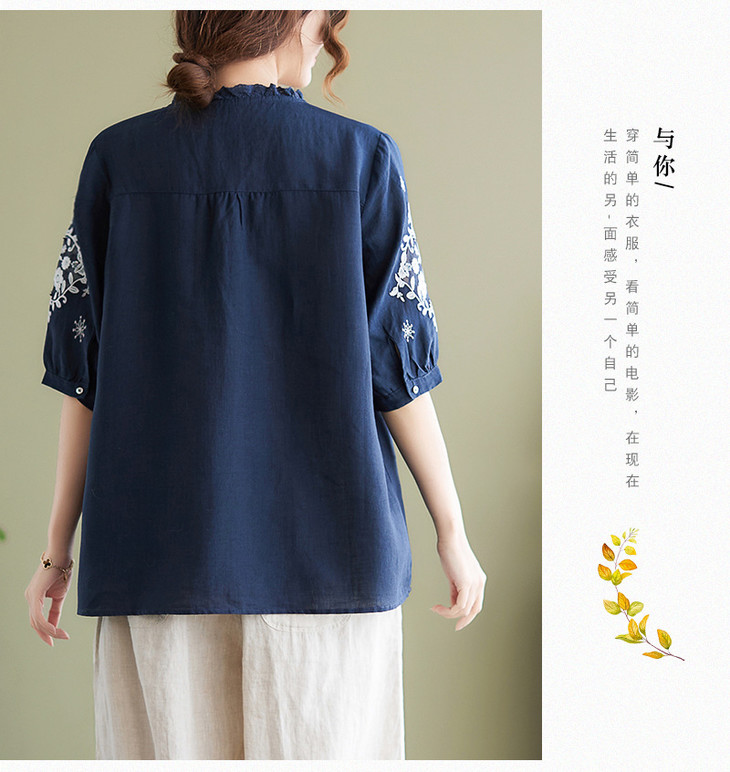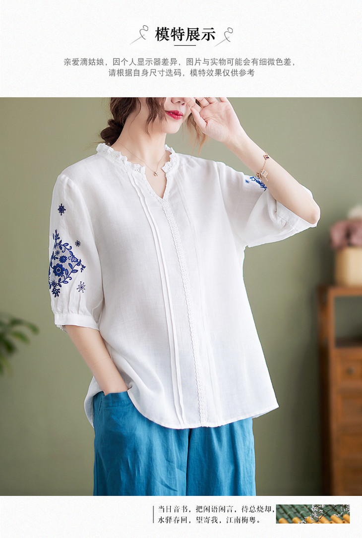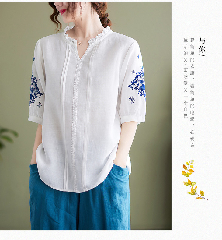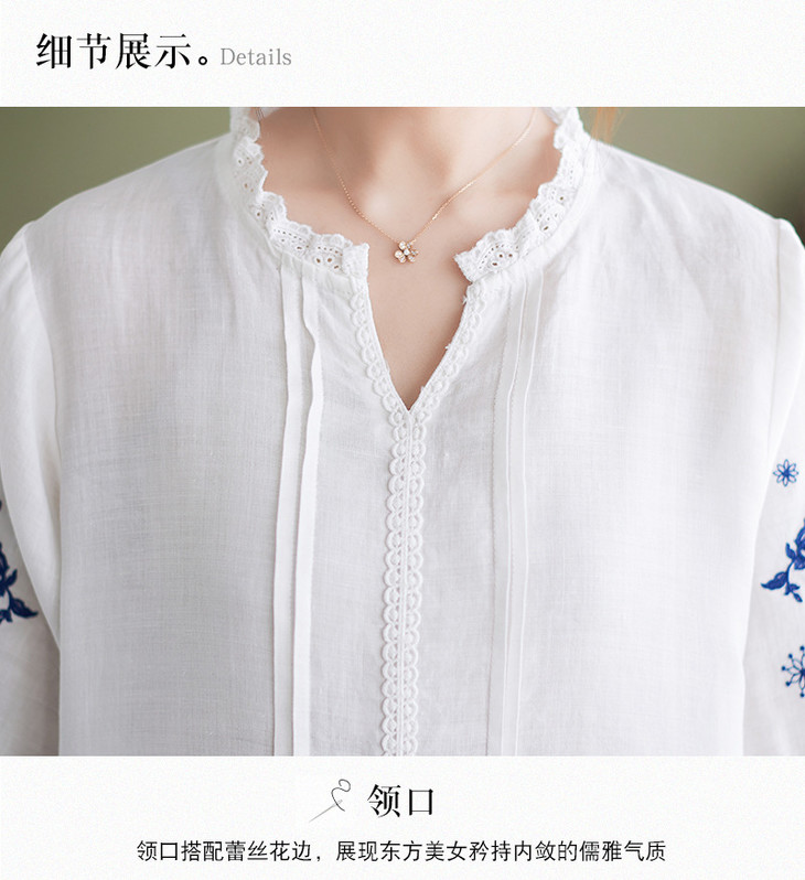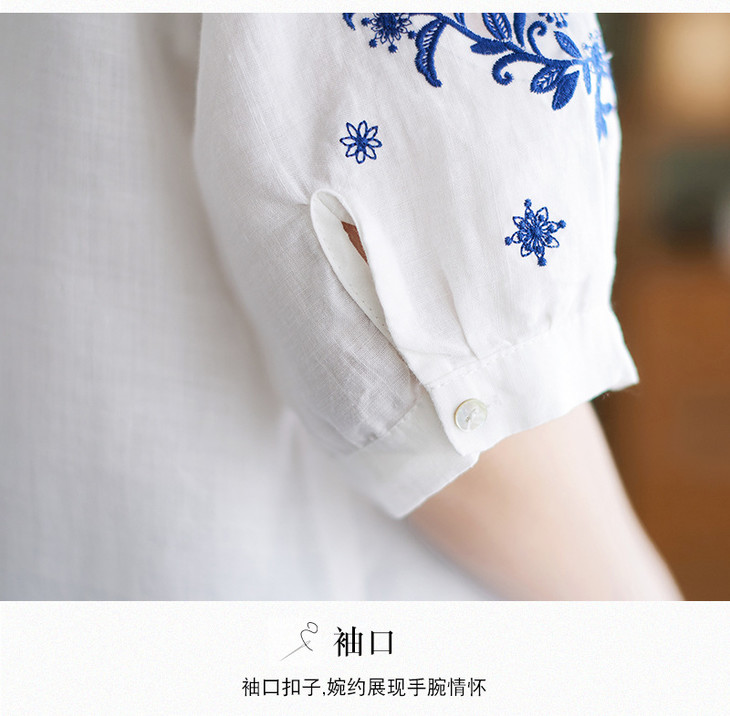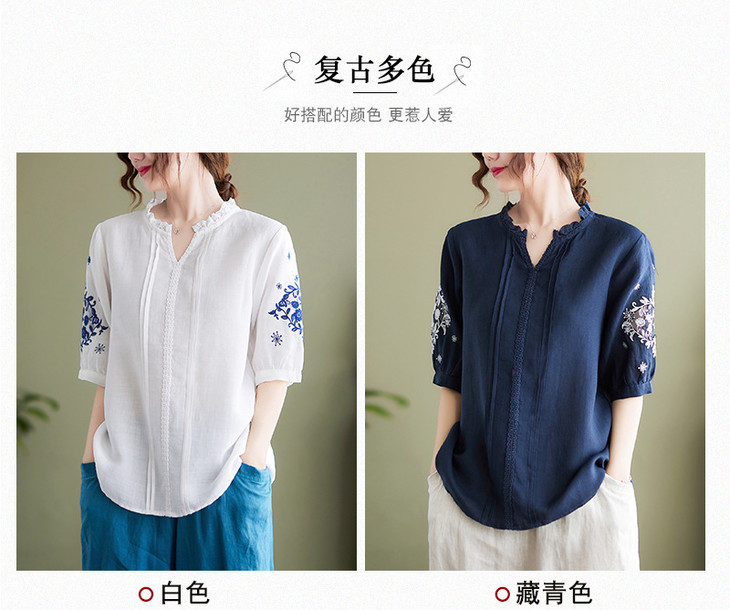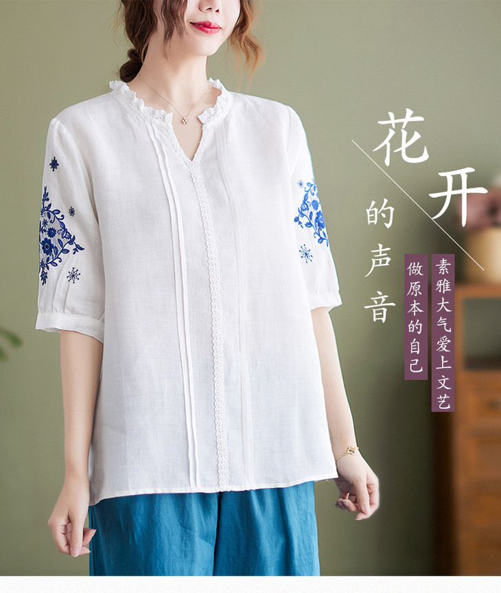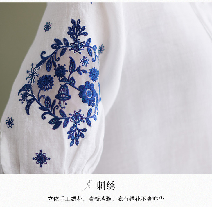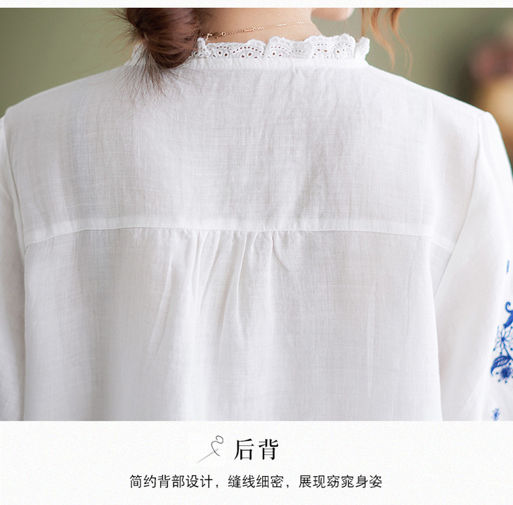 GYH 652衬衫刺绣宽松复古棉麻上衣