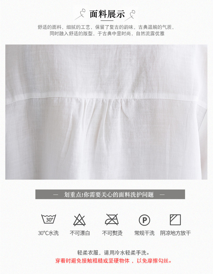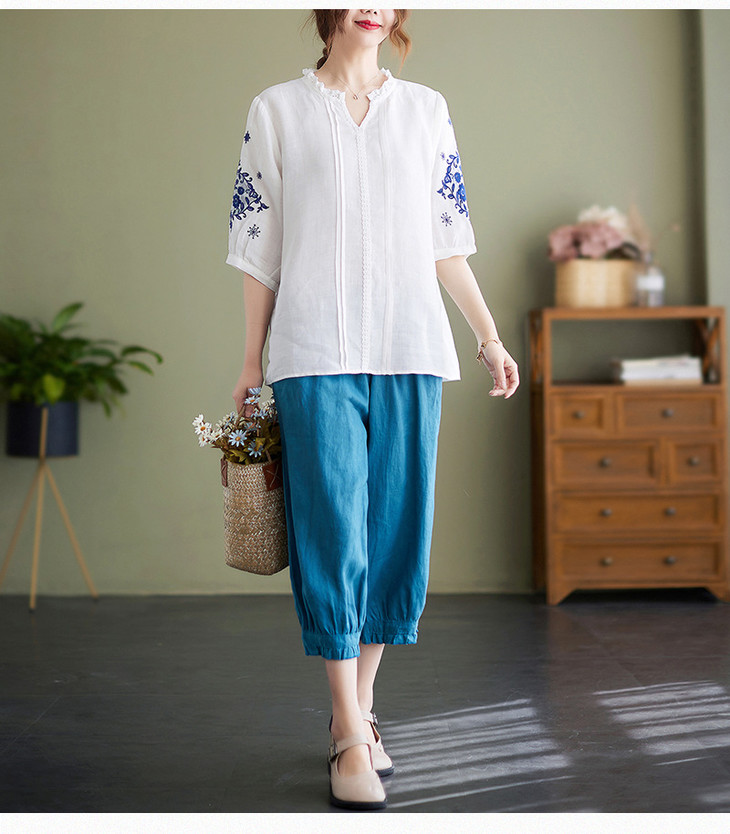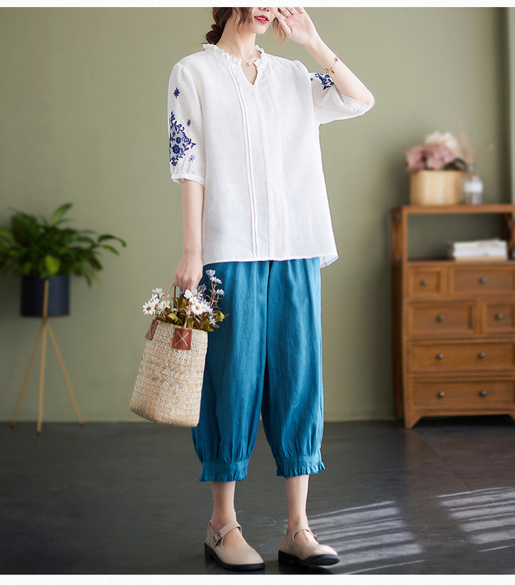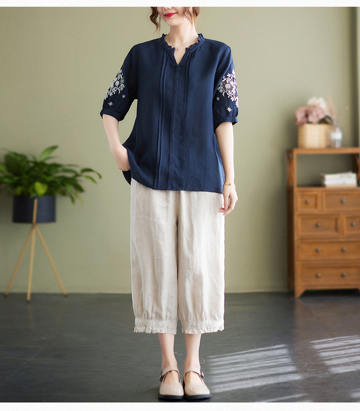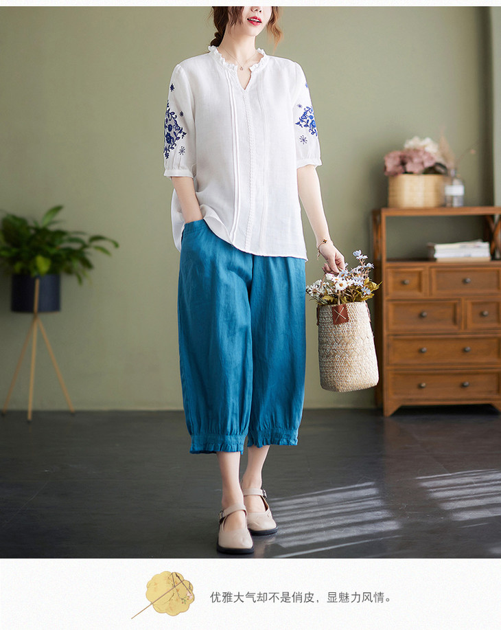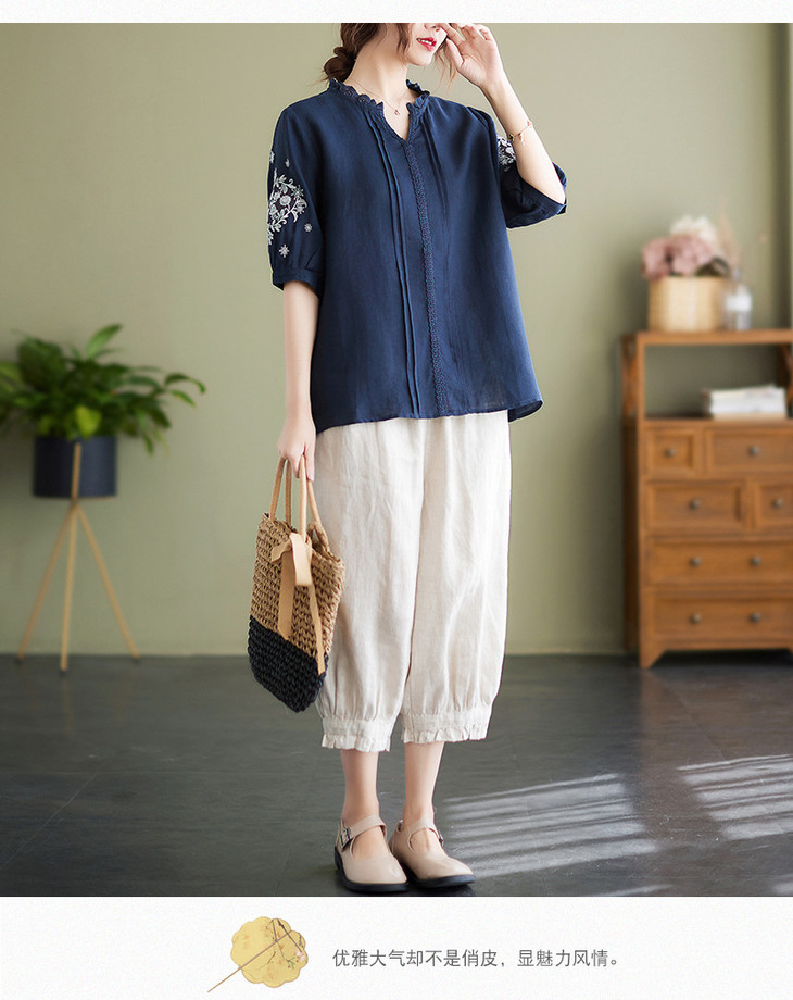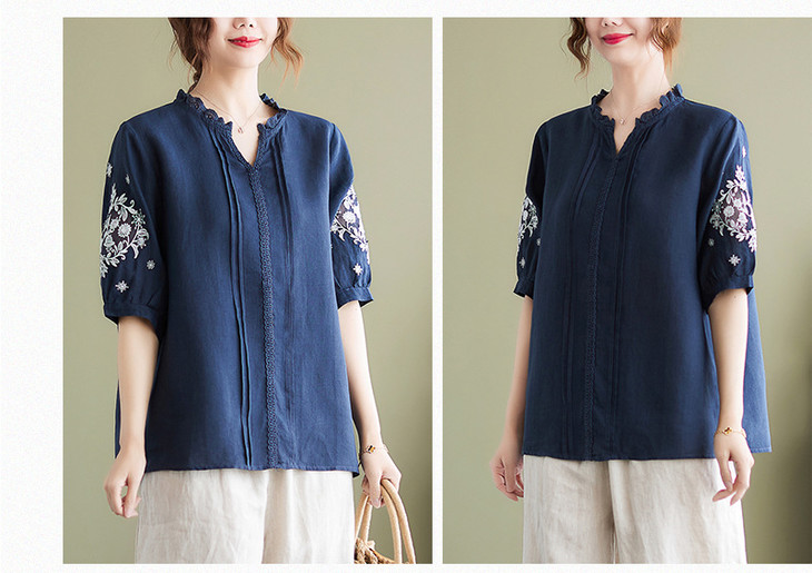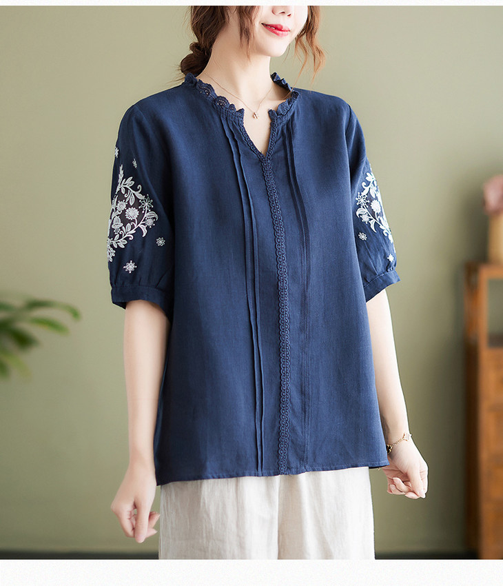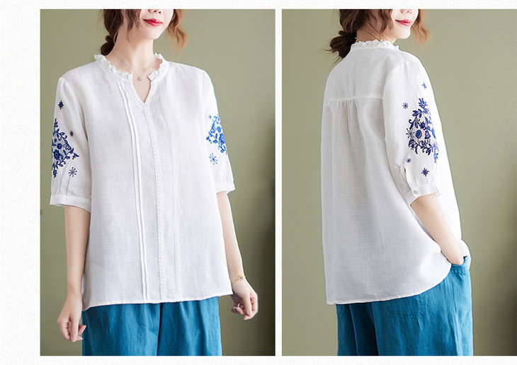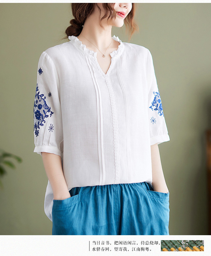 GYH 652衬衫刺绣宽松复古棉麻上衣