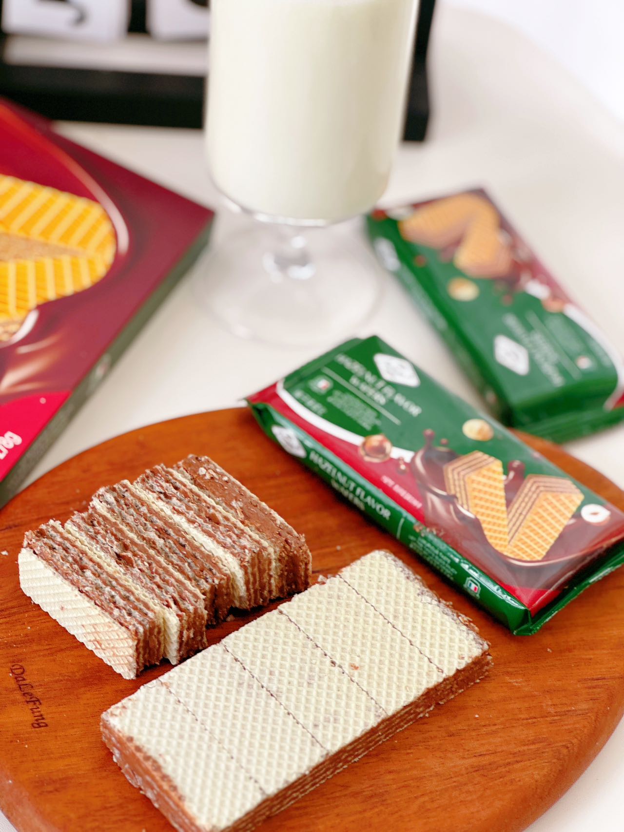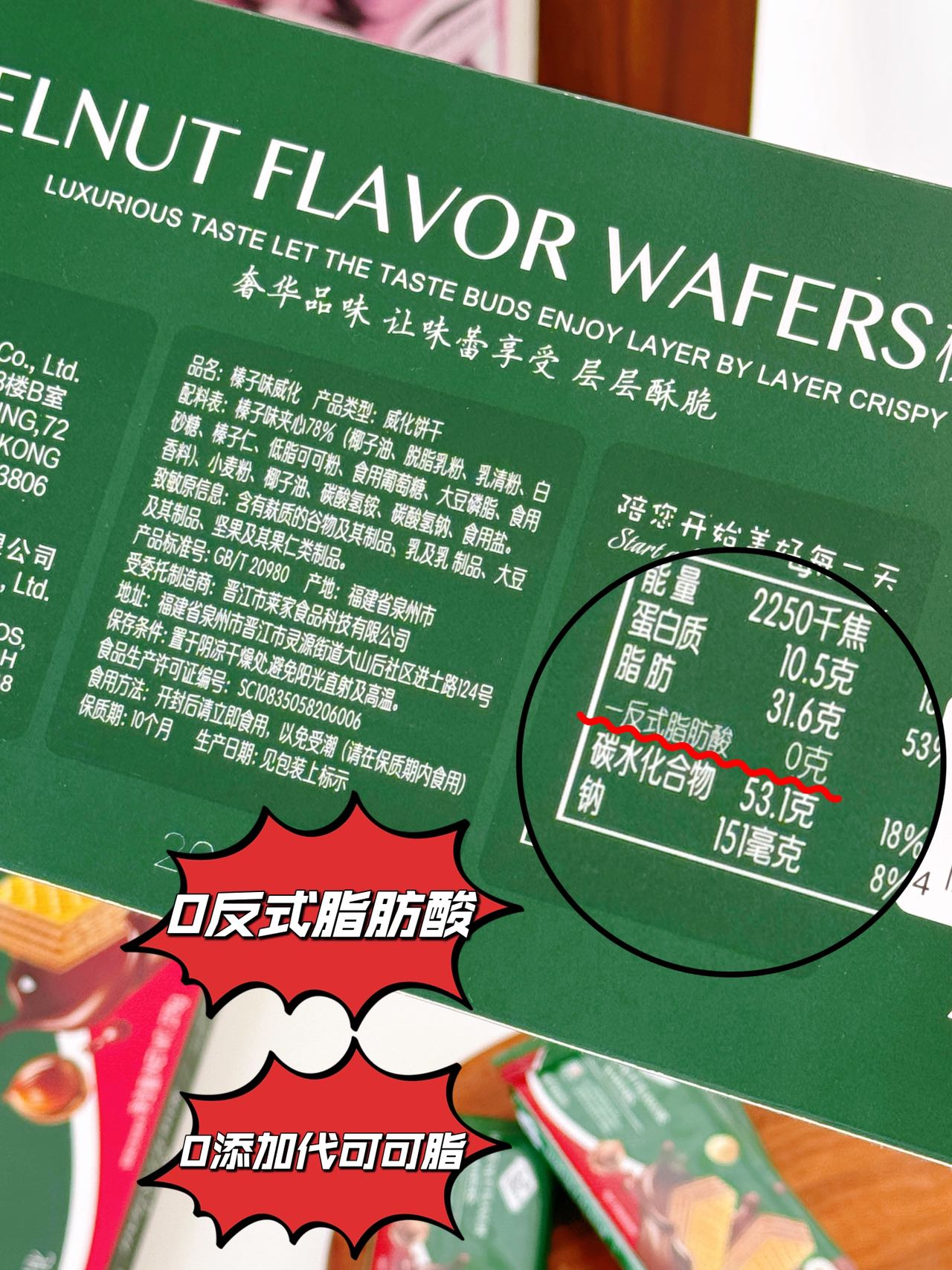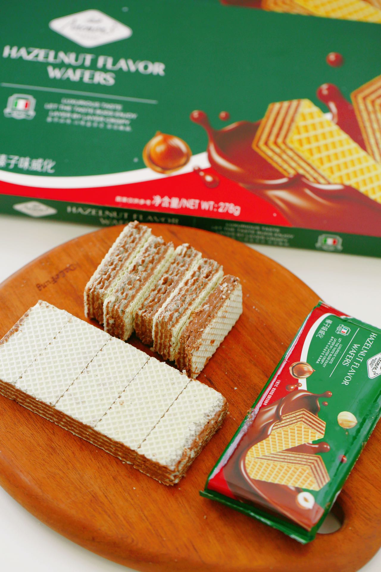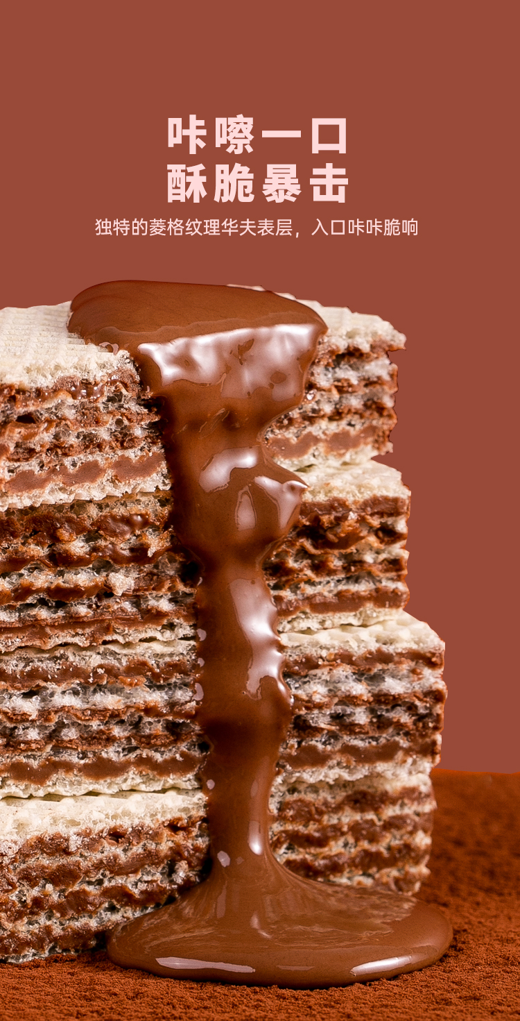 2.5层威化,4层夹心,独特的菱格纹理华夫表层,入口咔咔脆响