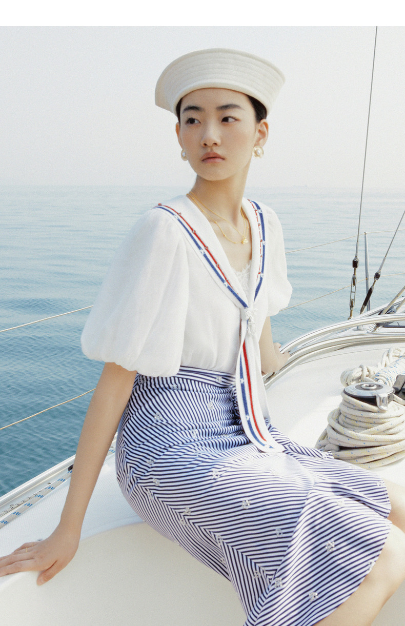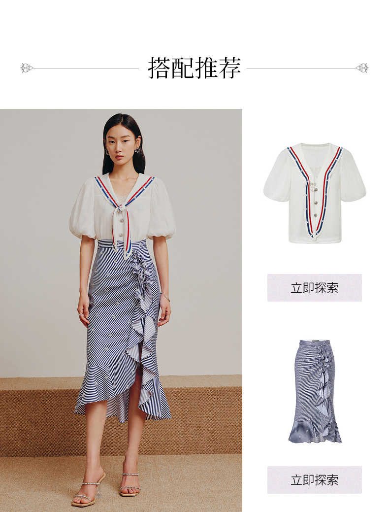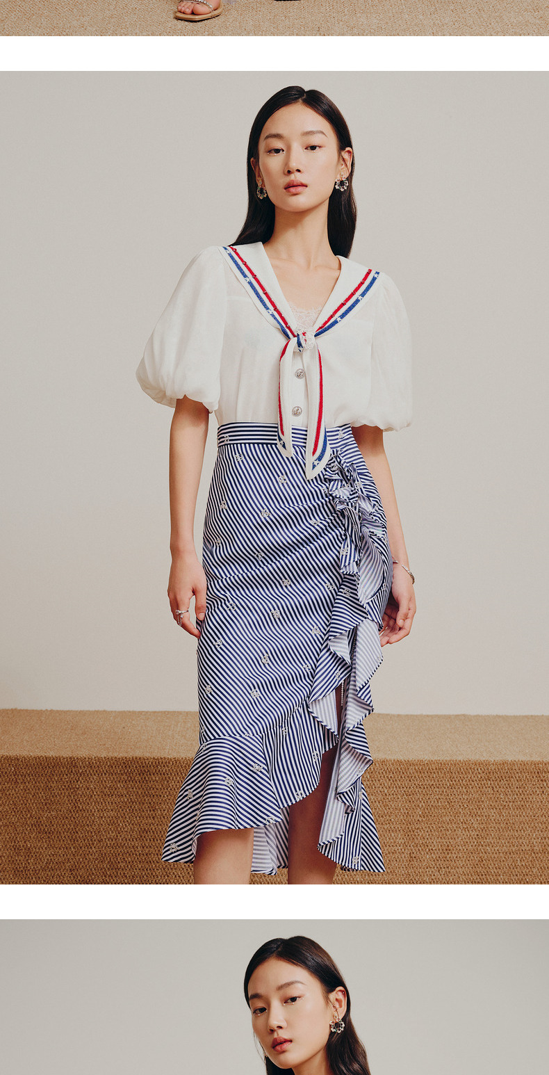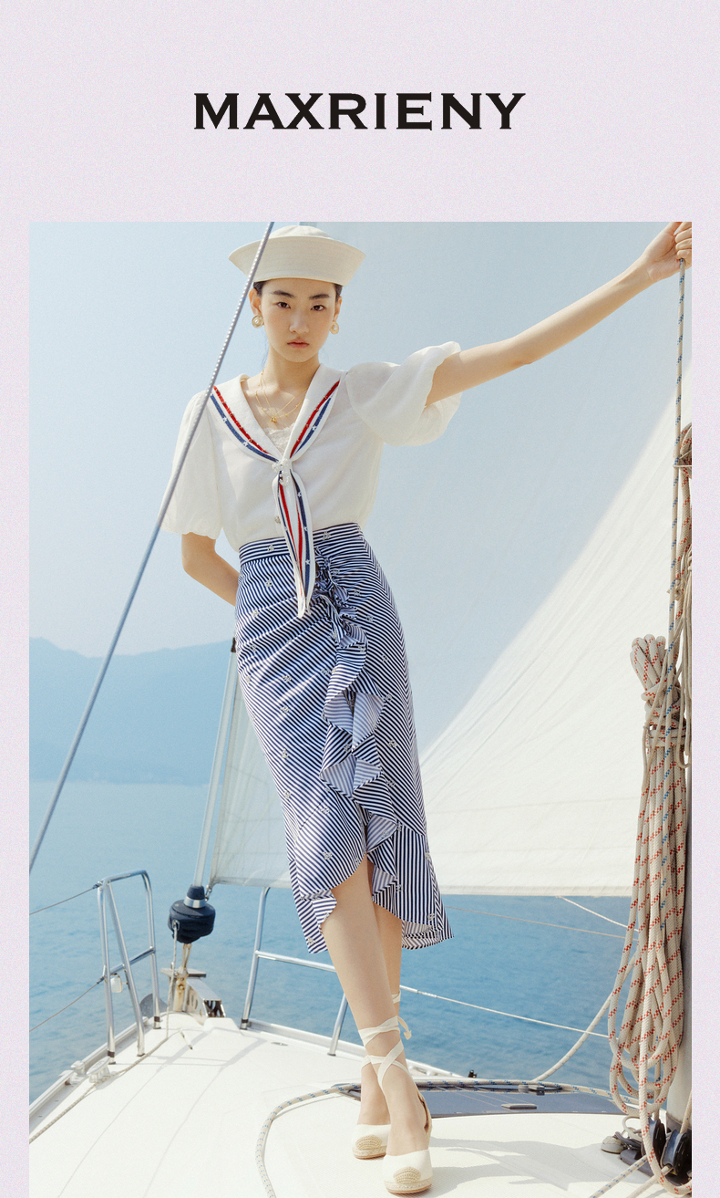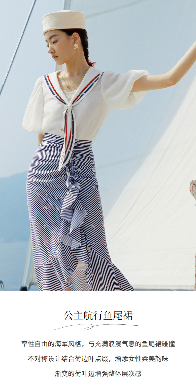 MAXRIENY赫本海军鱼尾裙海军风半裙(货号:MC88SK265)