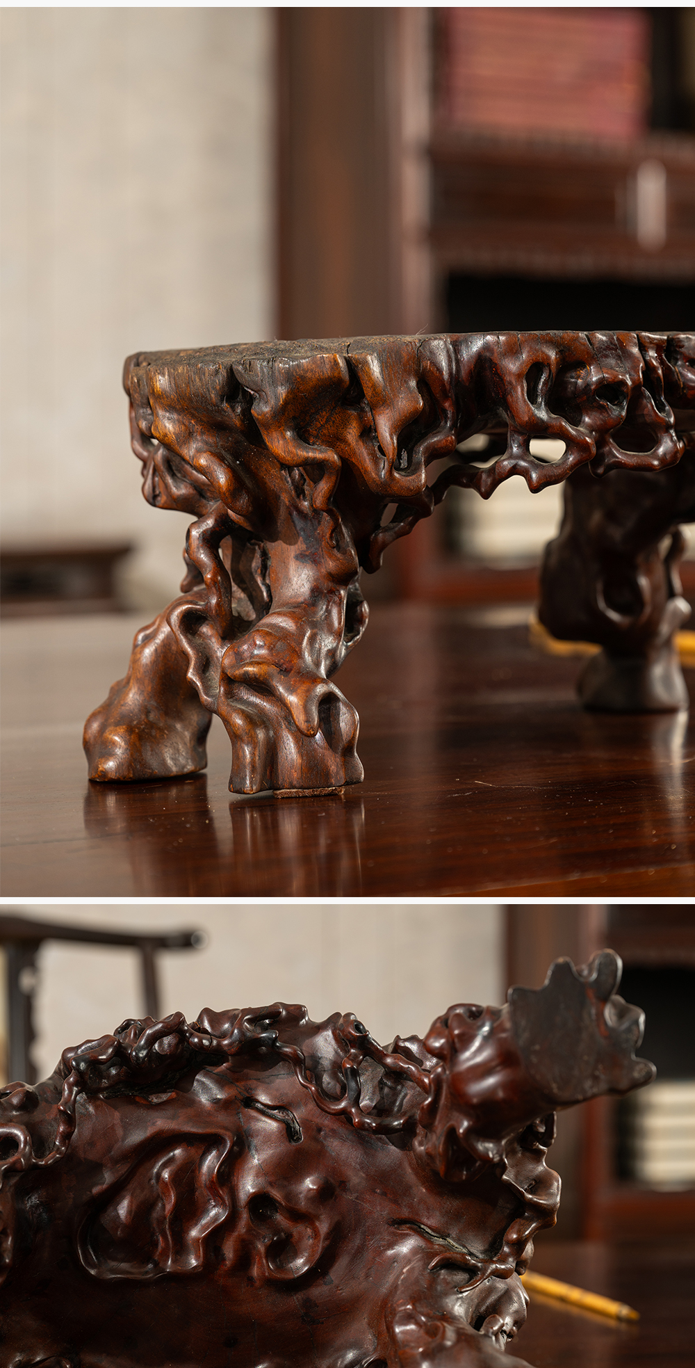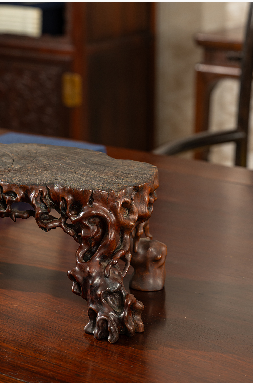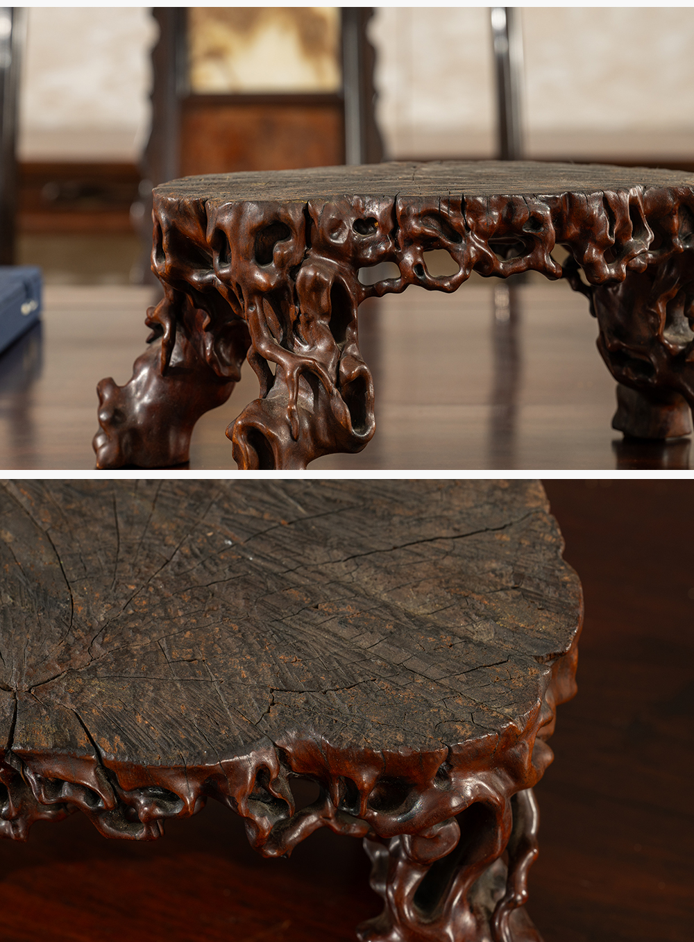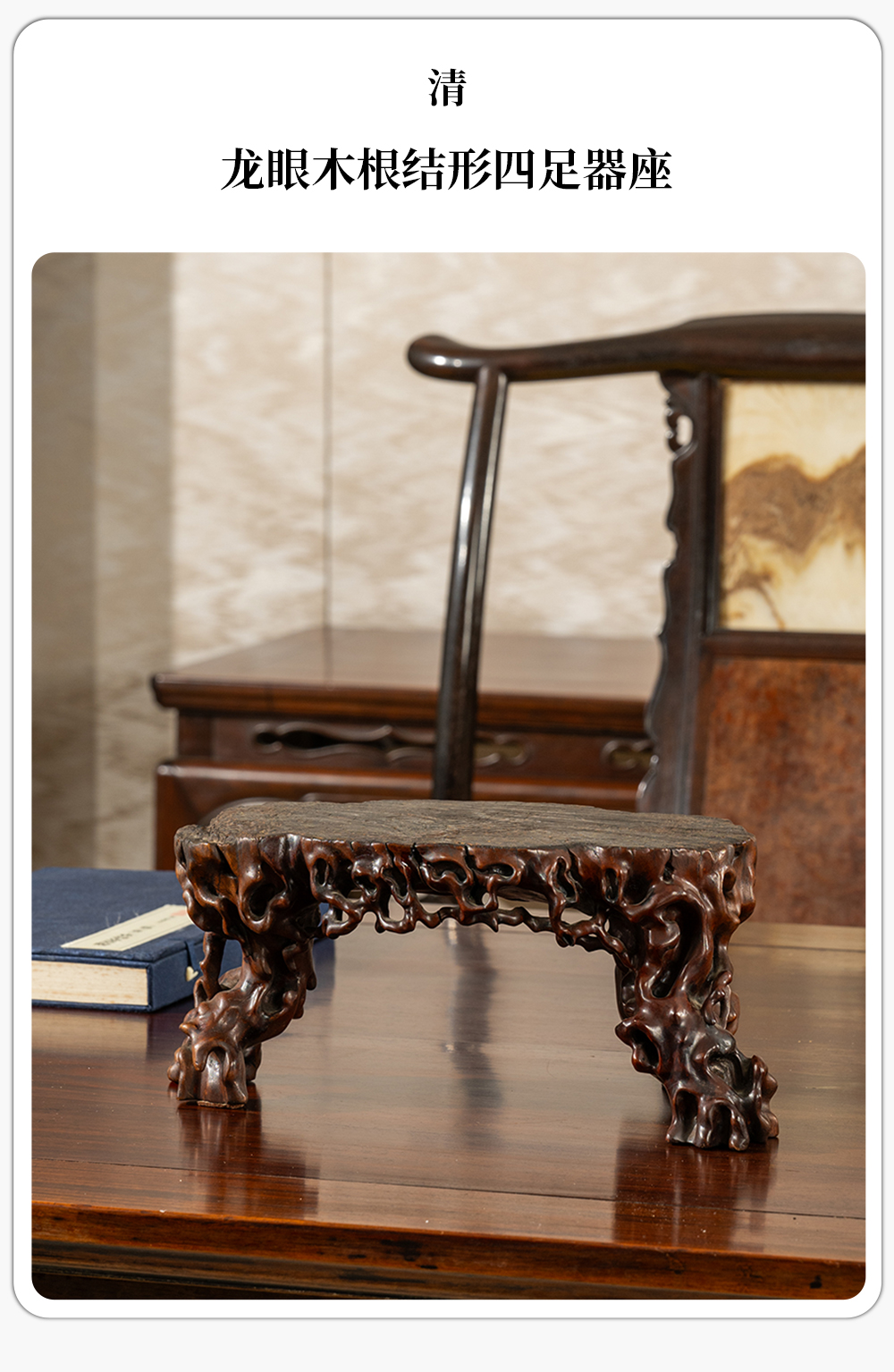 清 龙眼木根结形四足器座