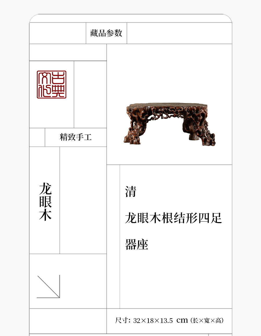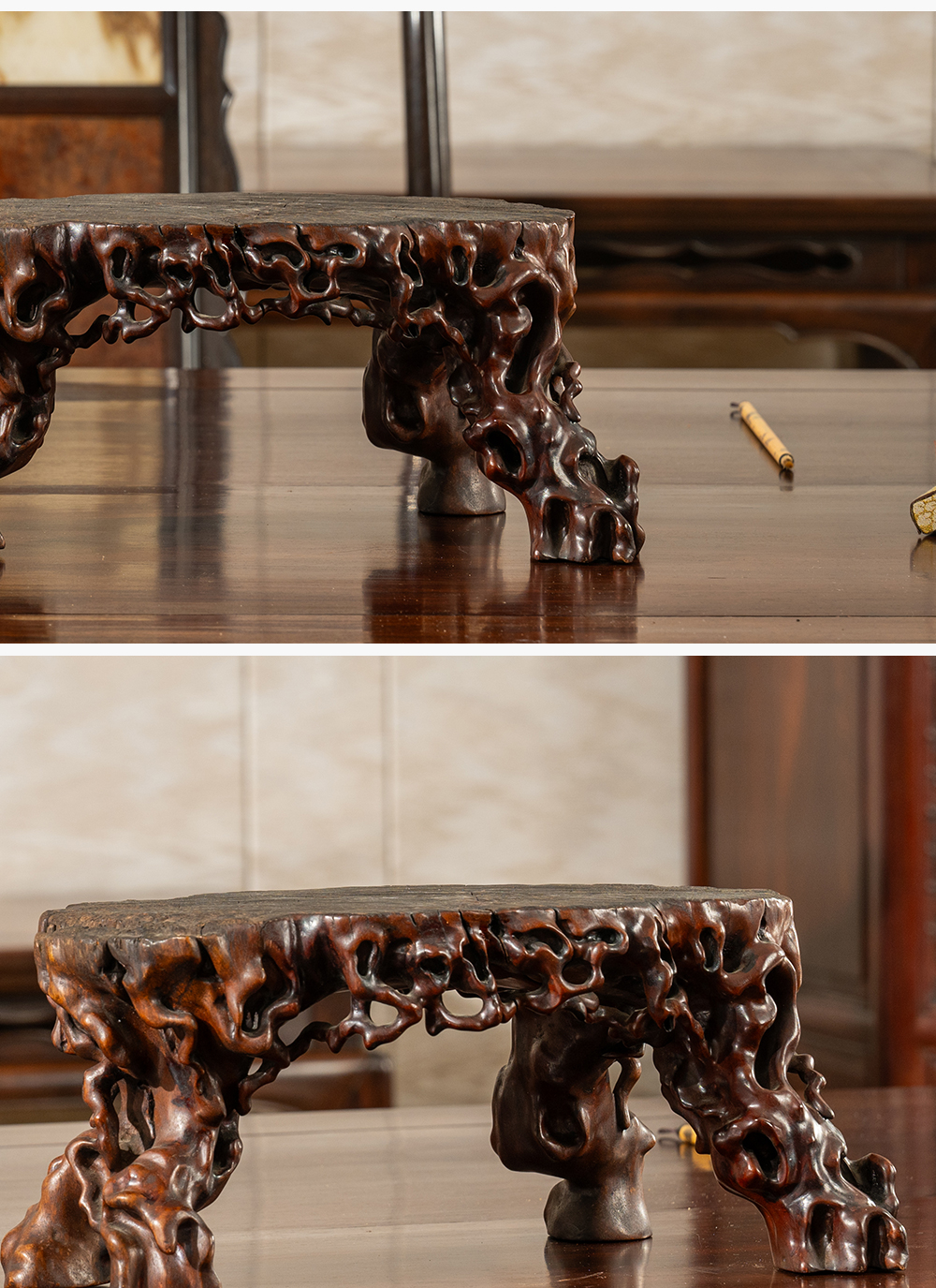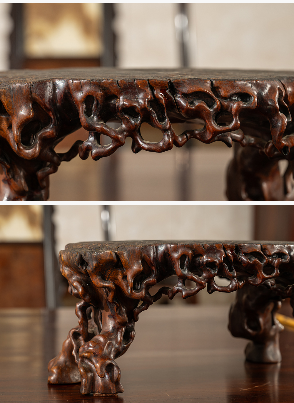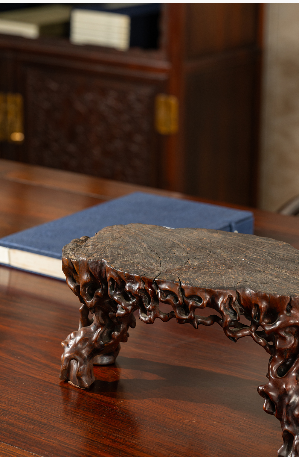 清 龙眼木根结形四足器座