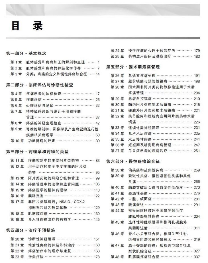 本书体现了一百多年美国疼痛医学的发展和变迁过程。原著由疼痛医学领域的著名专家编写。第3版根据近年来的最新进展对前面两版进行了更新,为方便读者,每个章节均增加了要点。本书从基础到临床,从临床评估和诊断到规范治疗,从诊疗思路到治疗方法,从药物治疗到介入及有创治疗,从具体治疗到综合管理,多层次全方位对疼痛医学进行了阐述,是广大疼痛工作者不可多得的参考书。它不仅适合疼痛医学的初学者,对具有一定临床经验的中、高级临床医师也能提供参考。