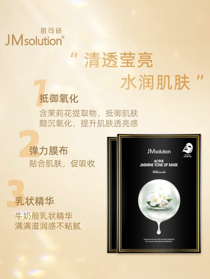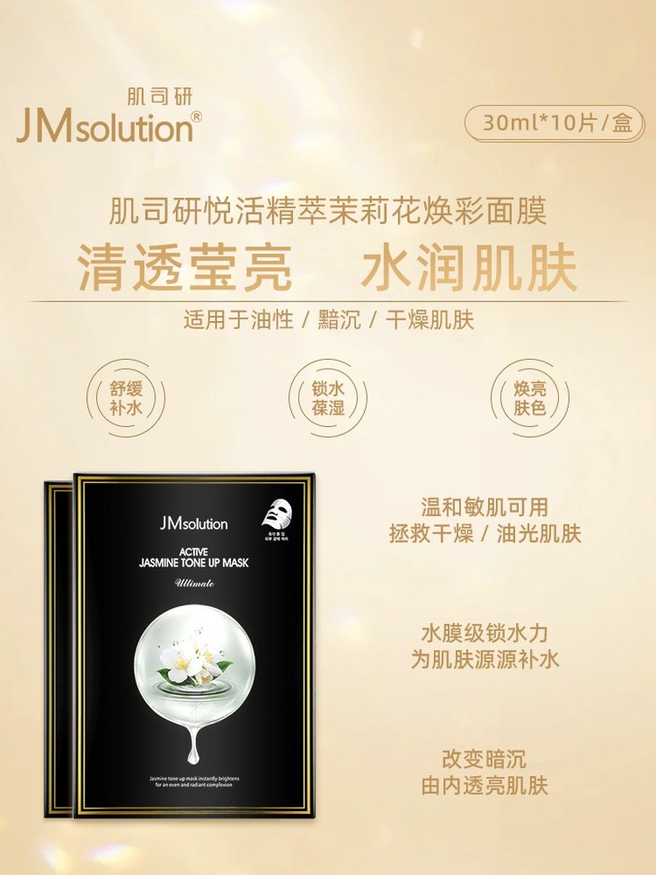 👑JM solution 茉莉花提亮面膜(极致版) 👍改变暗沉 由内而外透亮肌肤 💦蕴含:茉莉花提取物+烟酰胺+3种透明质酸+金盏花提取物+魁蒿叶提取物 ✅功效:舒缓补水、锁水保湿、焕亮肤色 💥牛奶般乳状精华,滋润不粘腻 🙌柔和纤维质地膜布,紧密贴合面部曲线,为肌肤传递水分 🧼温和敏感肌可用,拯救干燥/油光肌肤 💁适合所有肤质