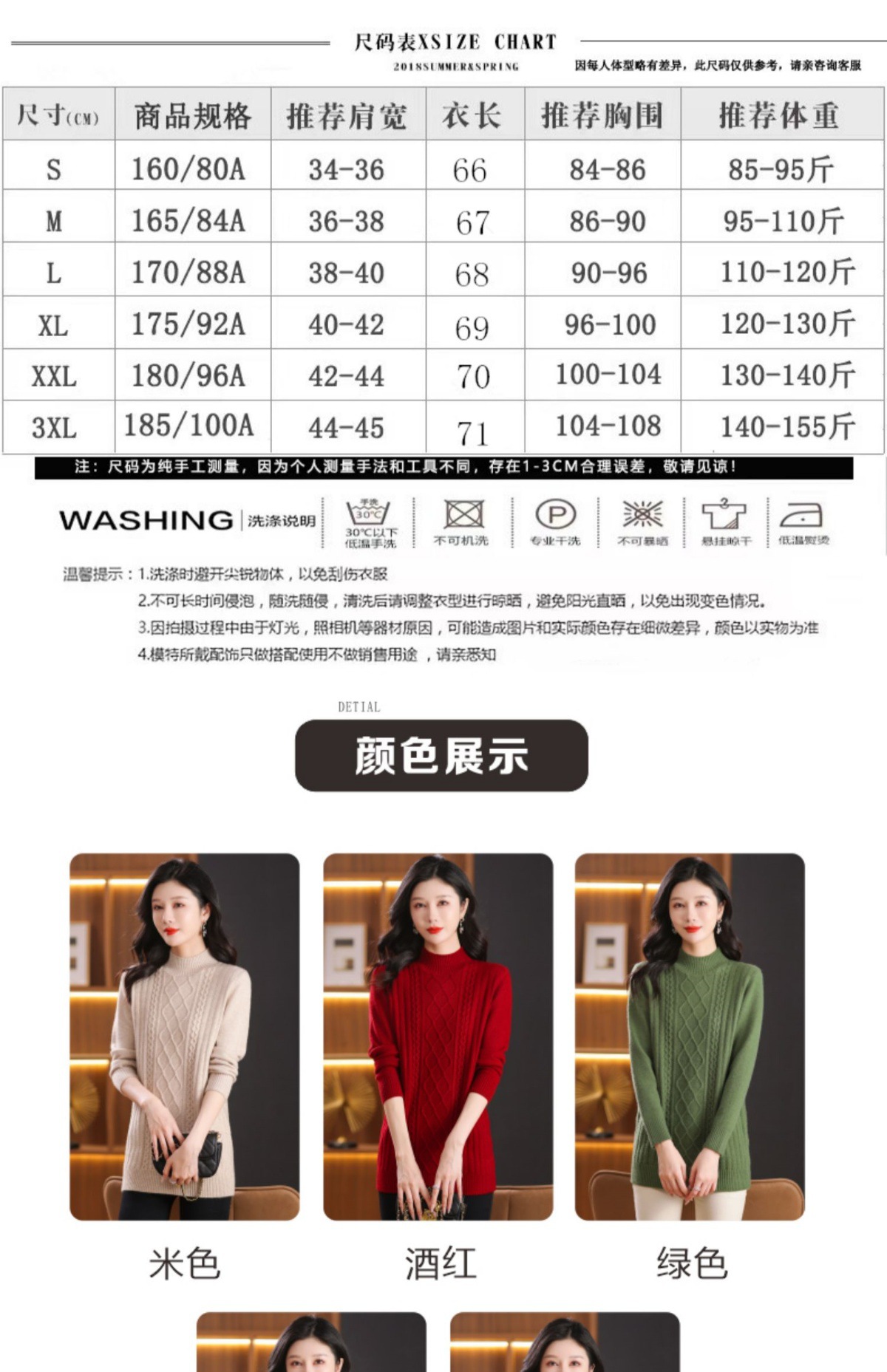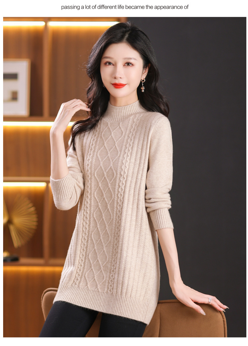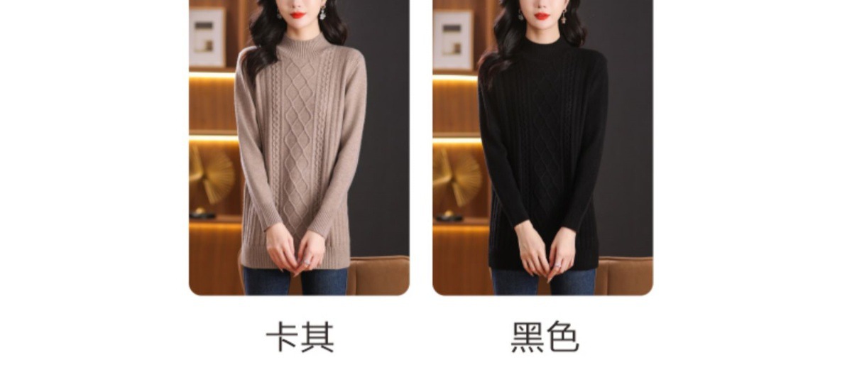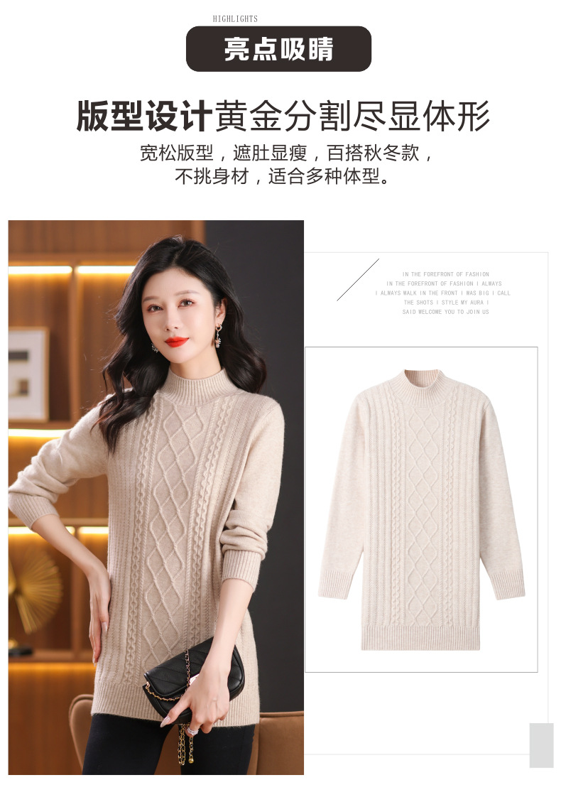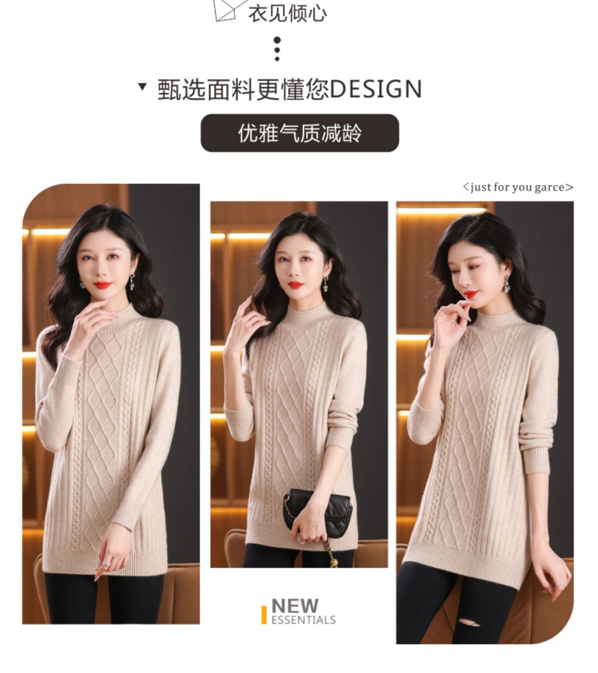 CC-101-31739中长款厚款毛衣女2024秋冬新款半高领羊毛针织内搭毛衣裙女