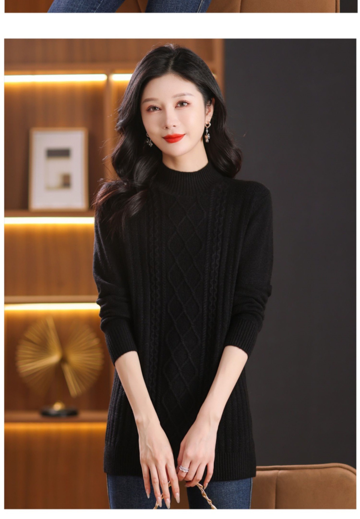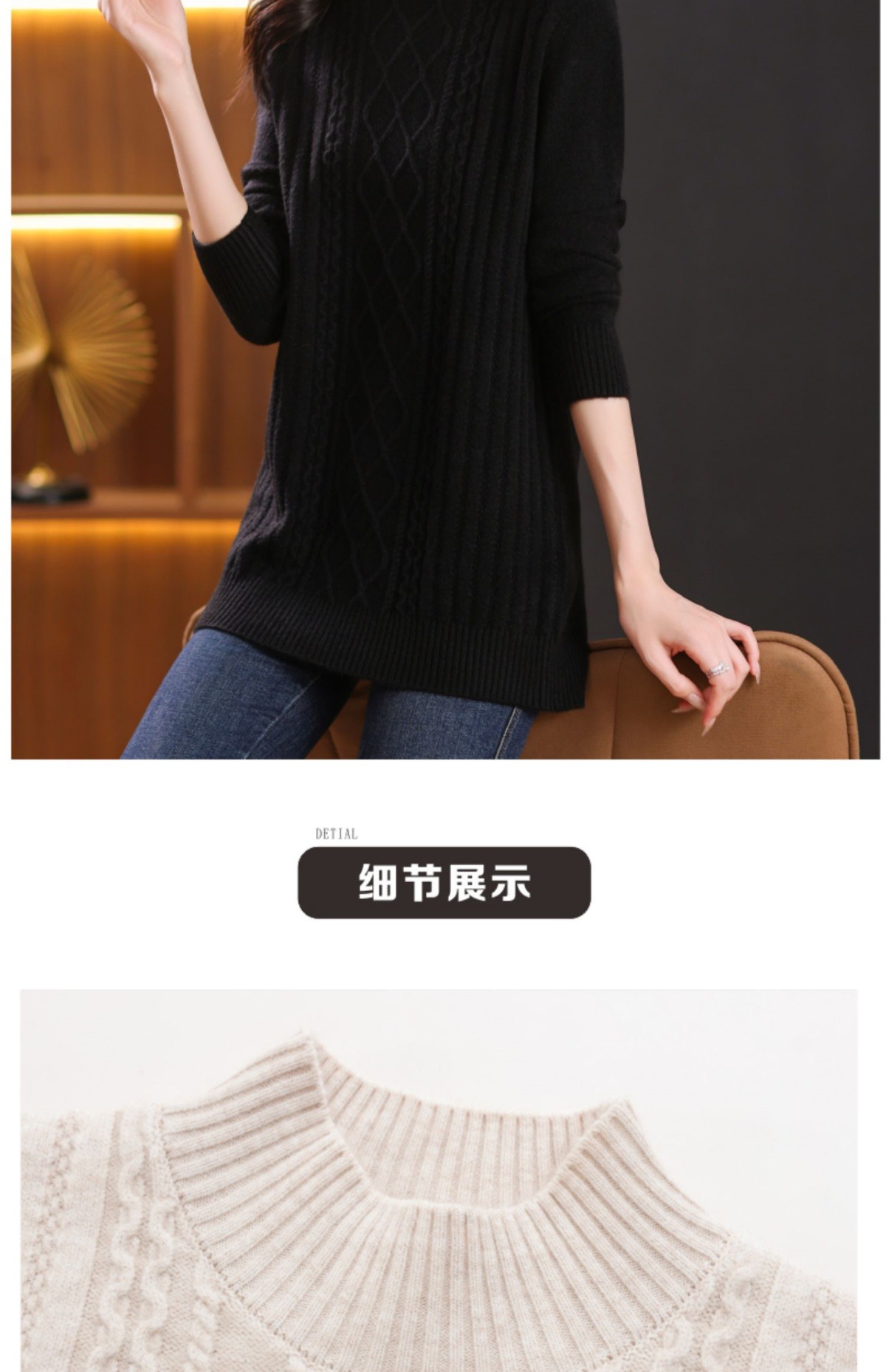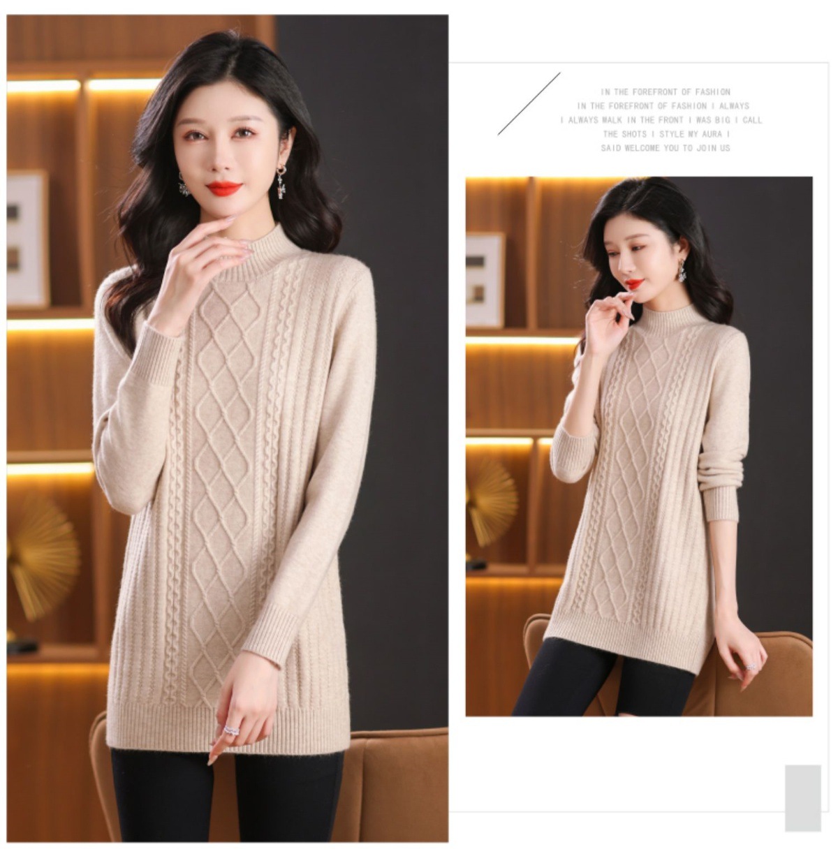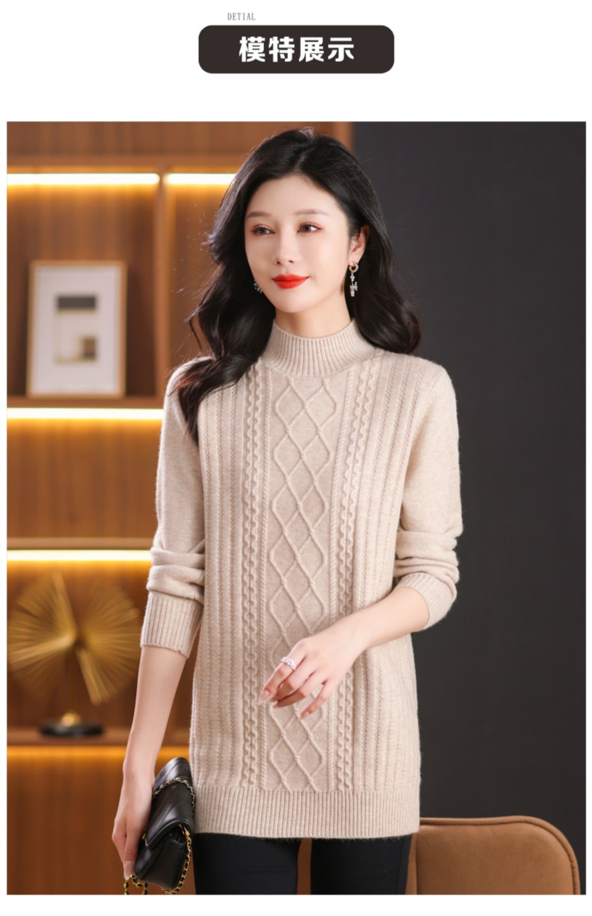 CC-101-31739中长款厚款毛衣女2024秋冬新款半高领羊毛针织内搭毛衣裙女