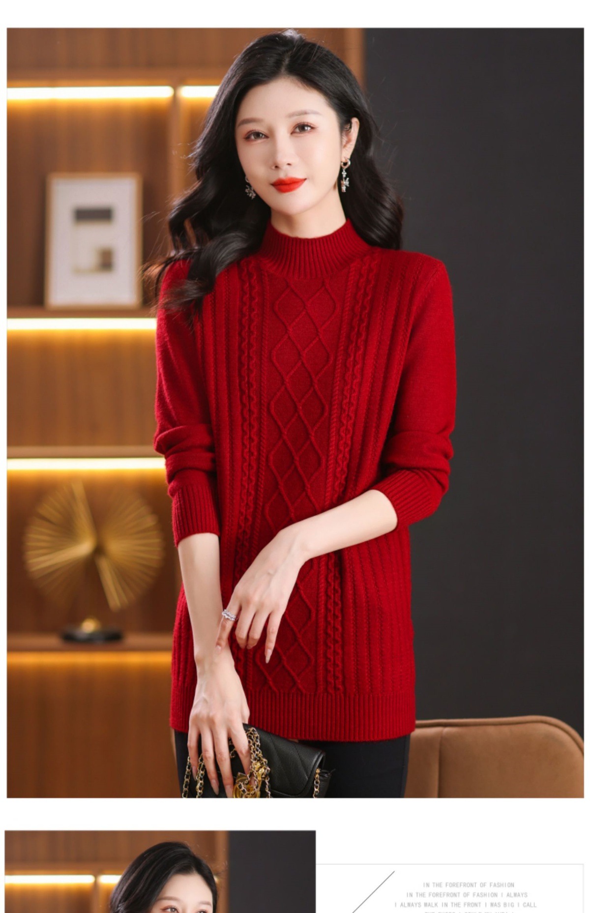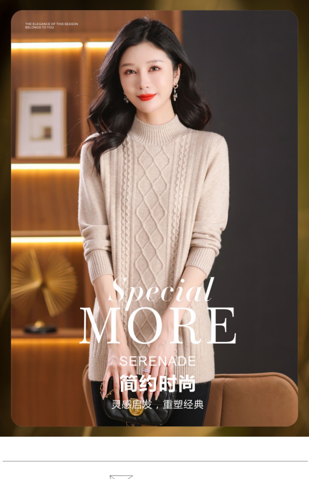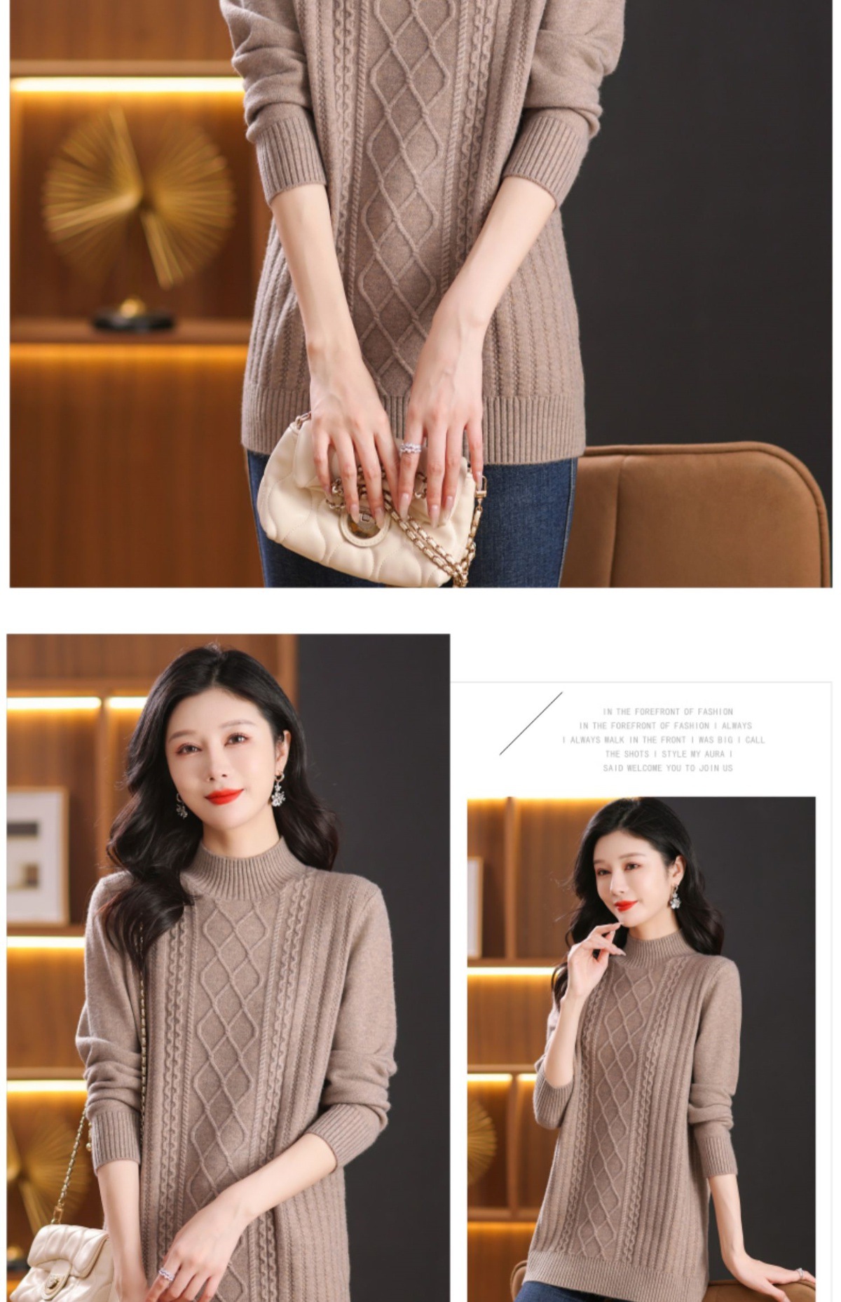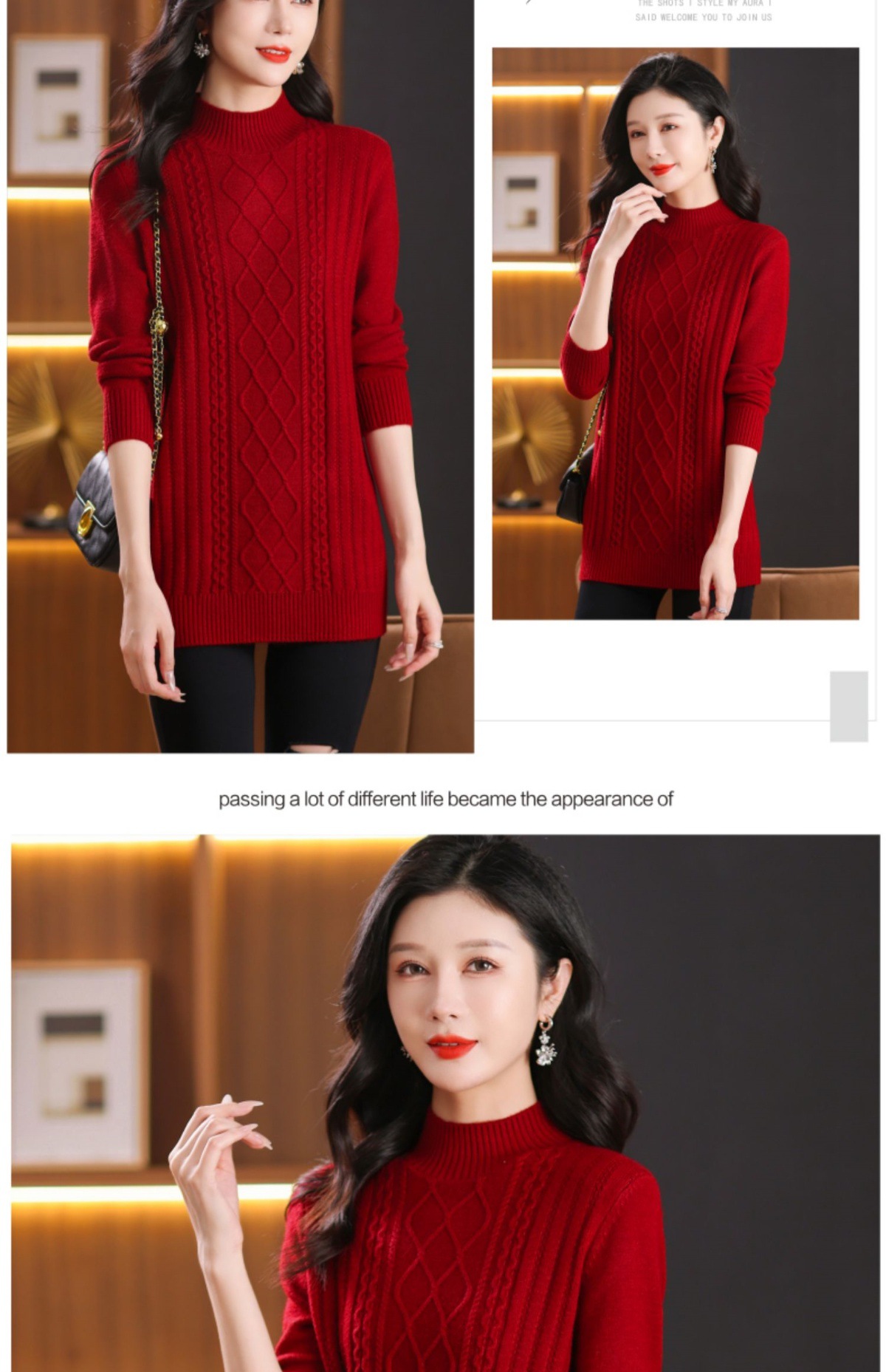 CC-101-31739中长款厚款毛衣女2024秋冬新款半高领羊毛针织内搭毛衣裙女