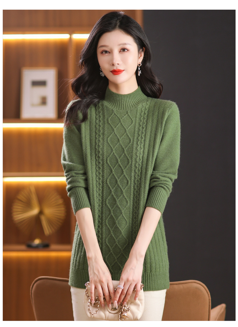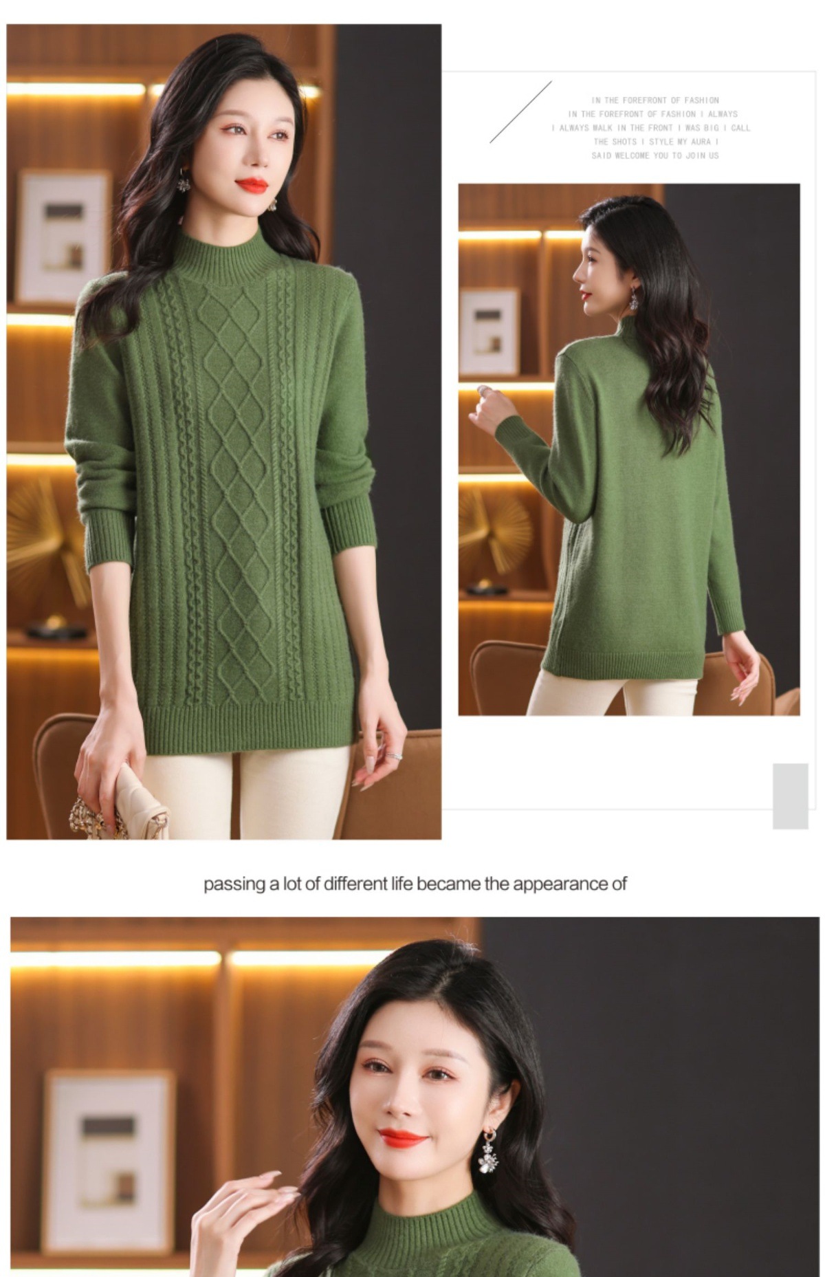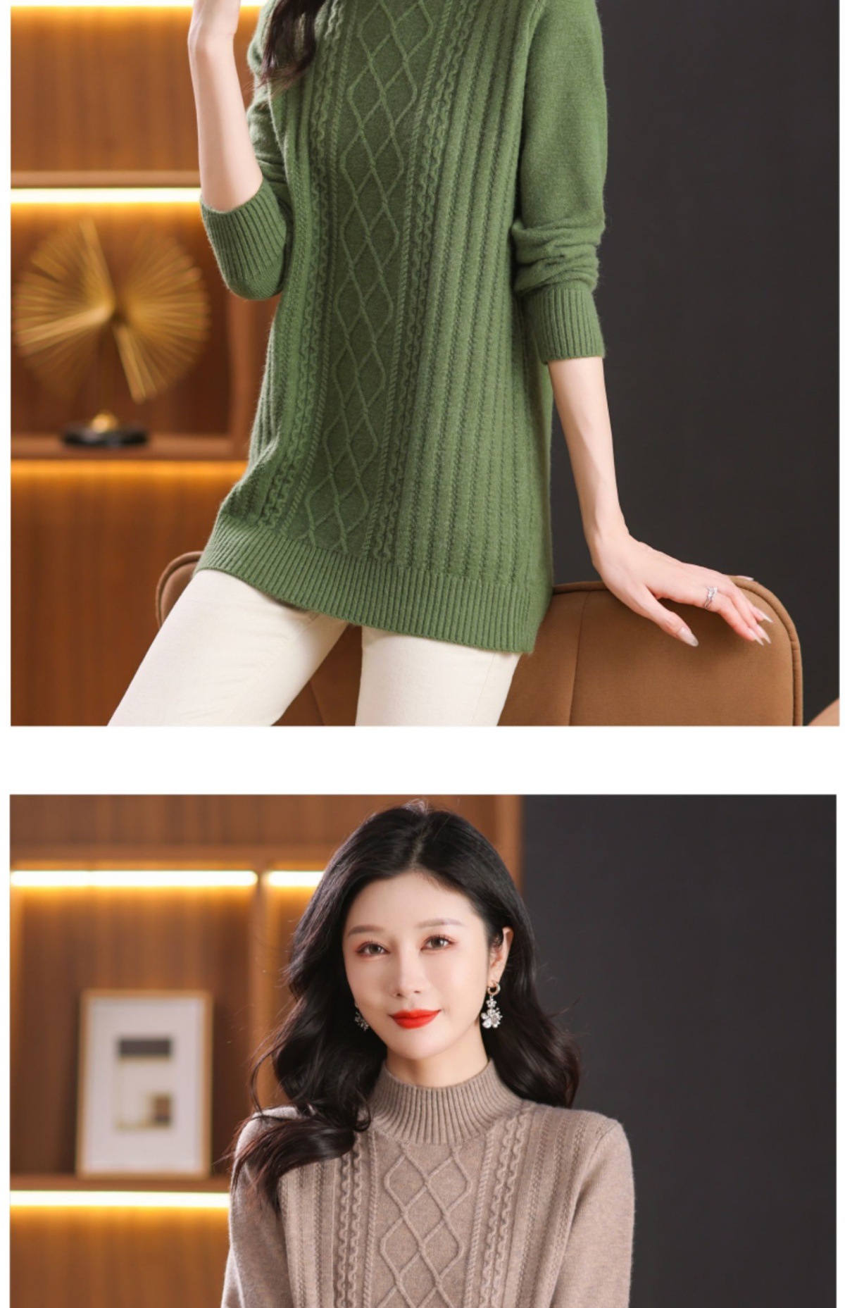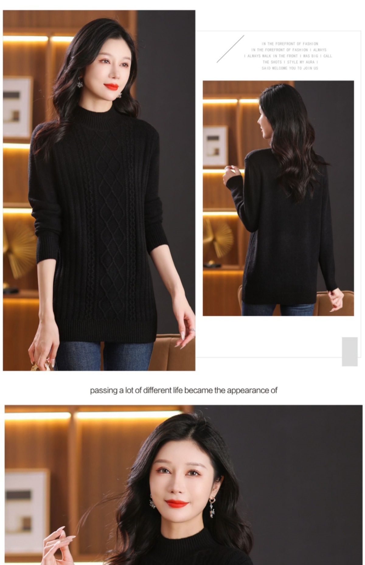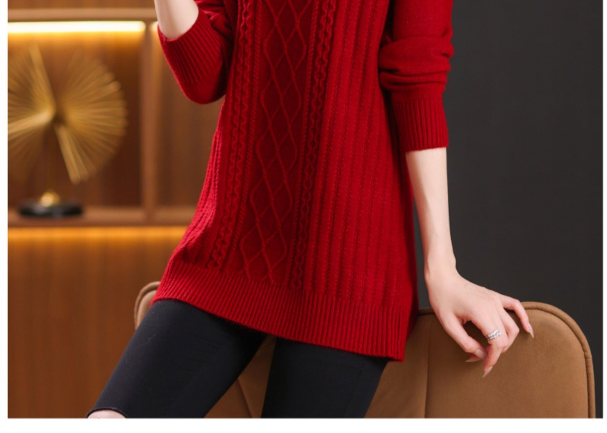 CC-101-31739中长款厚款毛衣女2024秋冬新款半高领羊毛针织内搭毛衣裙女