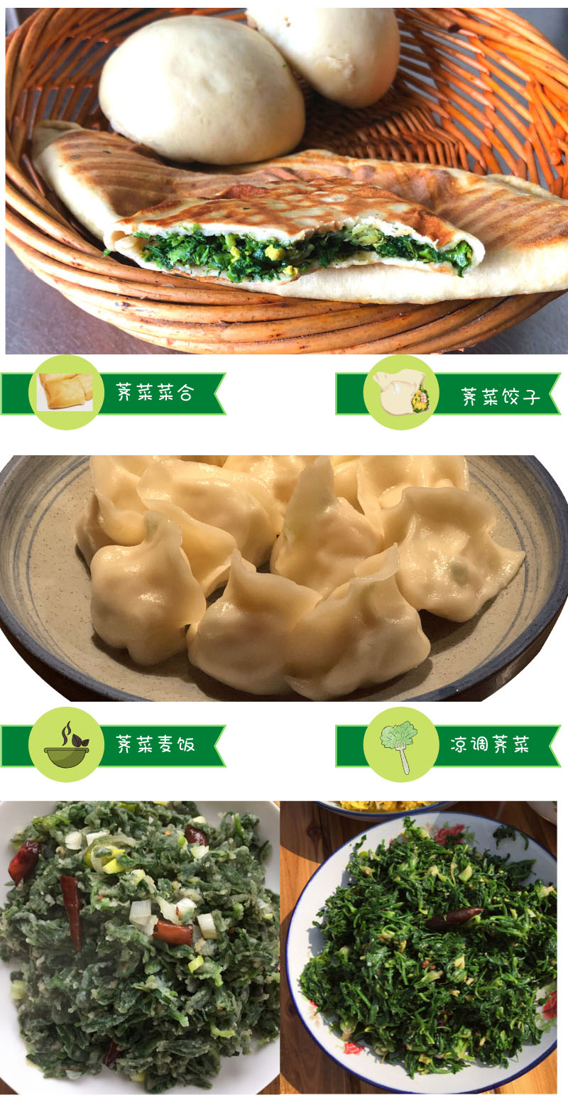 荠菜开花后就不能食用了,采摘期极短,大约只有10天。收到后建议冷藏保存。