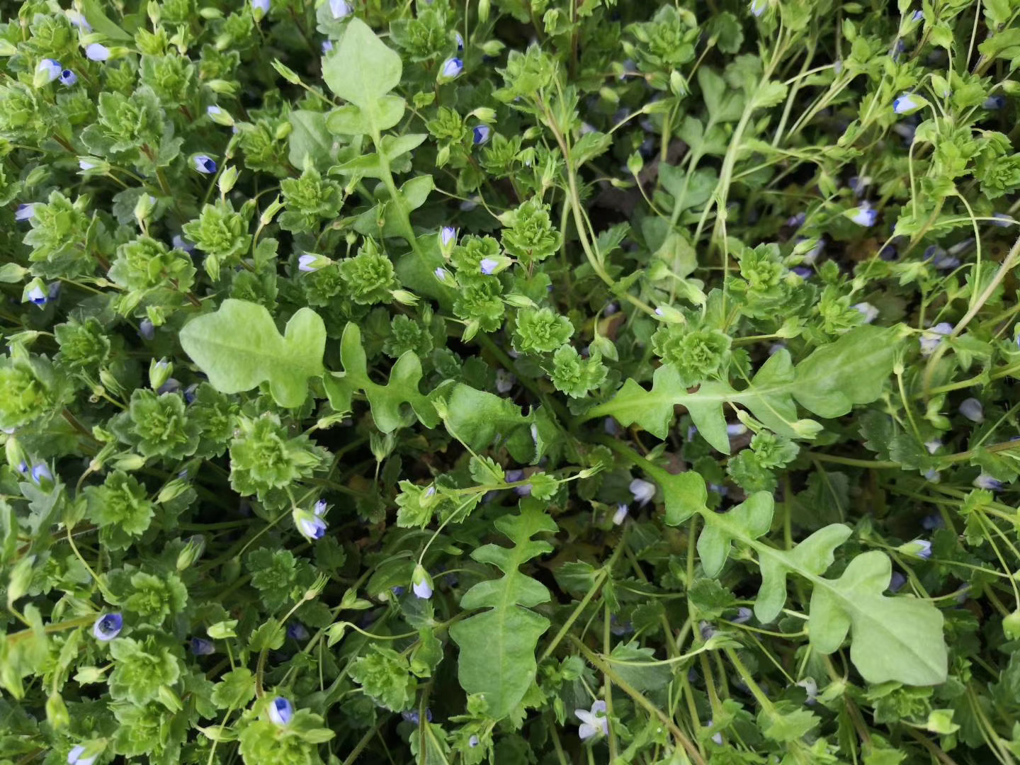 婆婆纳丛中的荠荠菜。这一口荠荠菜饺子是北方人最喜爱,没有吃过,就难以理解北方的春的味道。