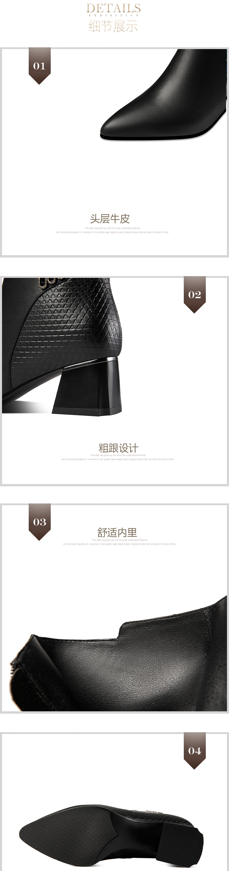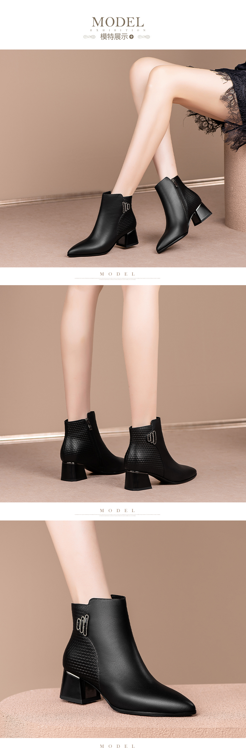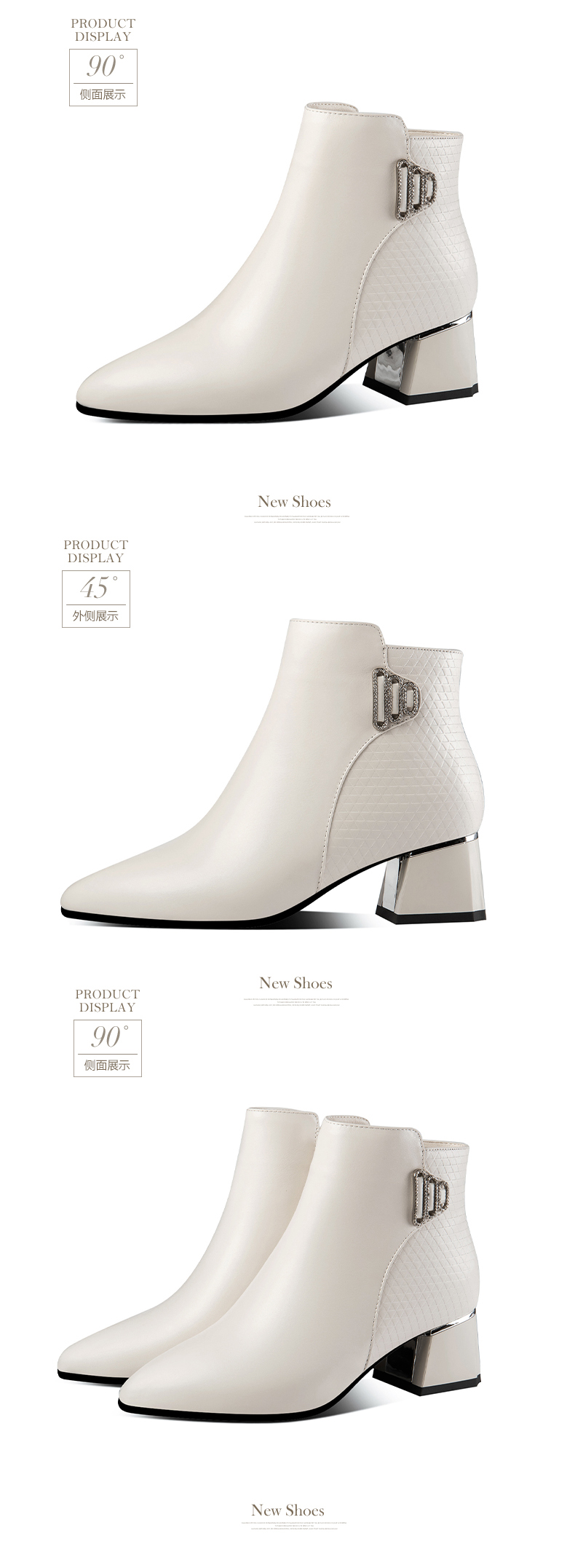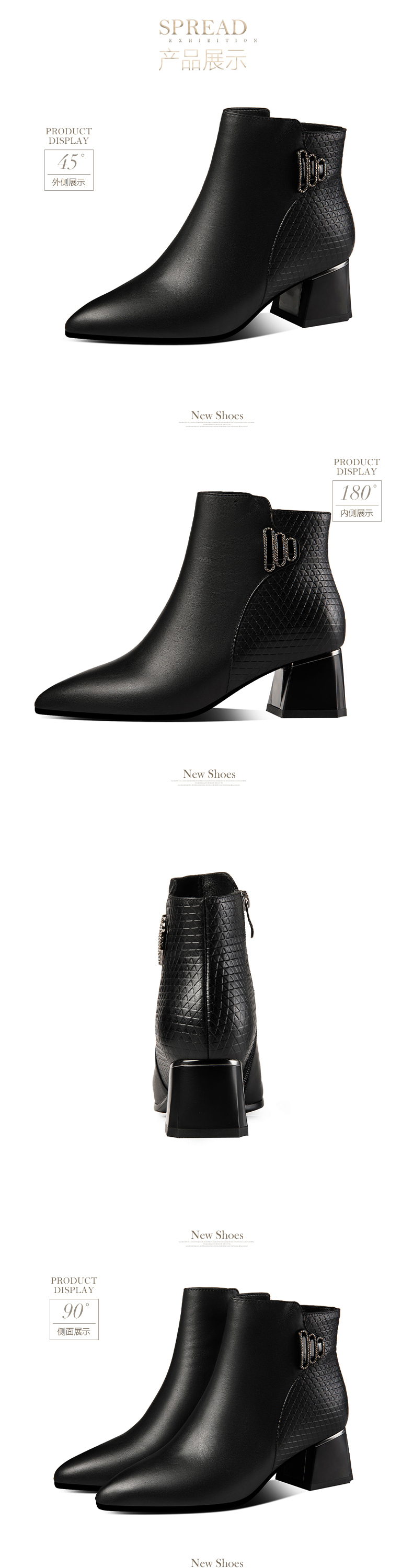 RB-XLY-7415秋冬粗跟尖头短靴女时装靴黑色白色绒里中跟女靴