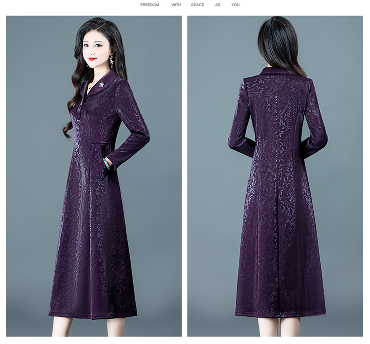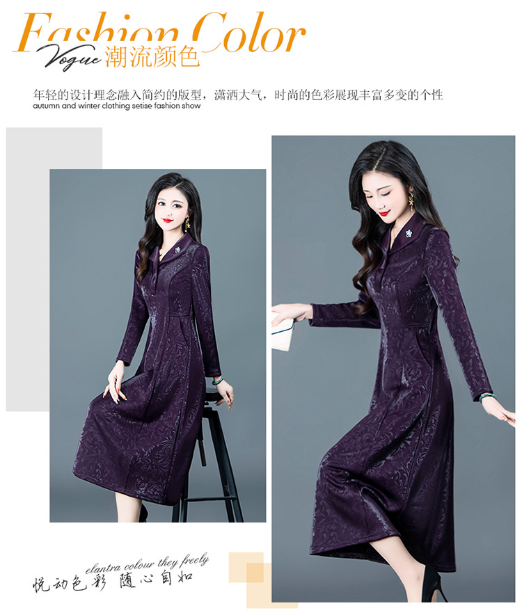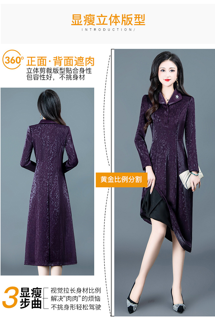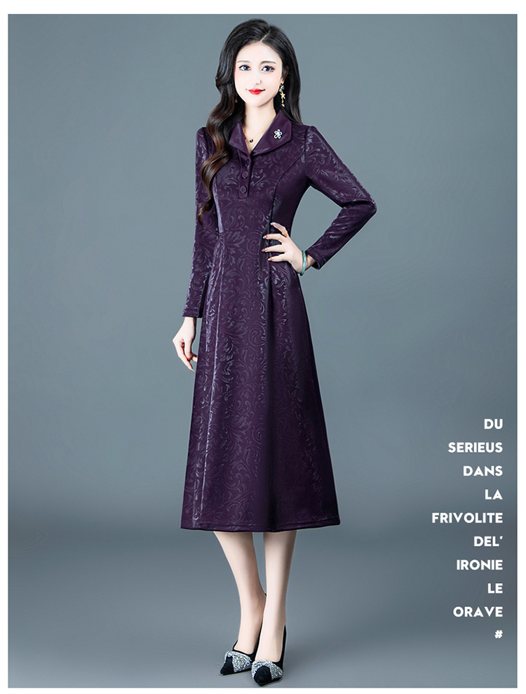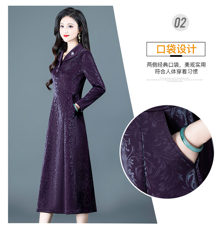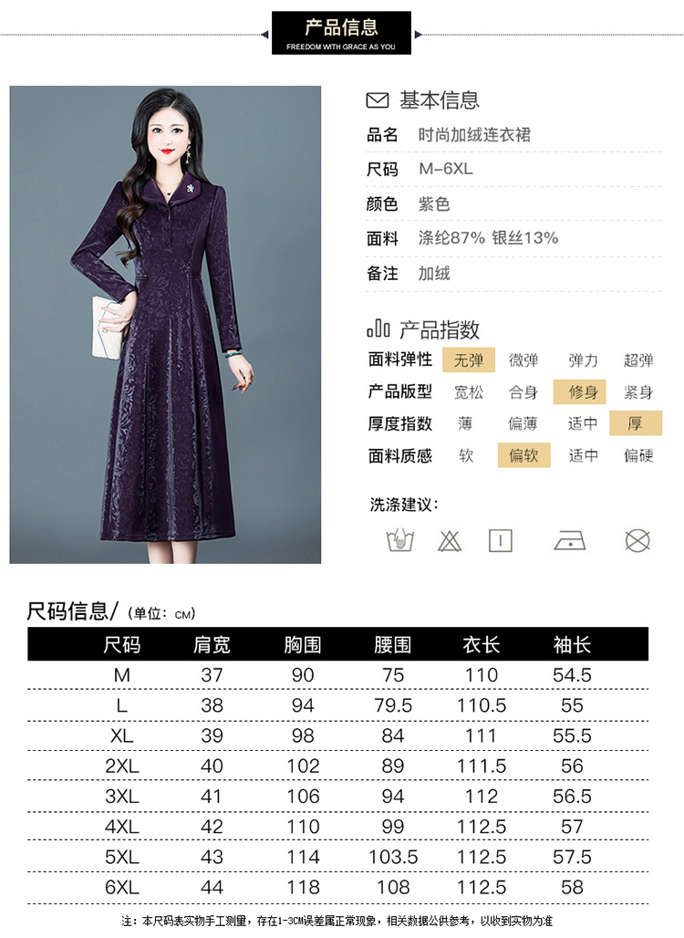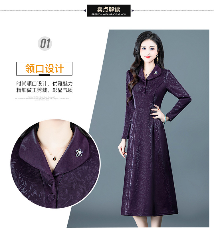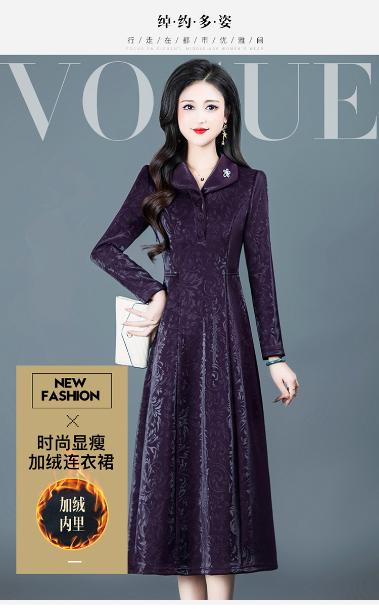 长款高腰打底裙,秋冬中年妈妈时尚加绒加厚长袖连衣裙过膝QYM-KED-H1513 -Y