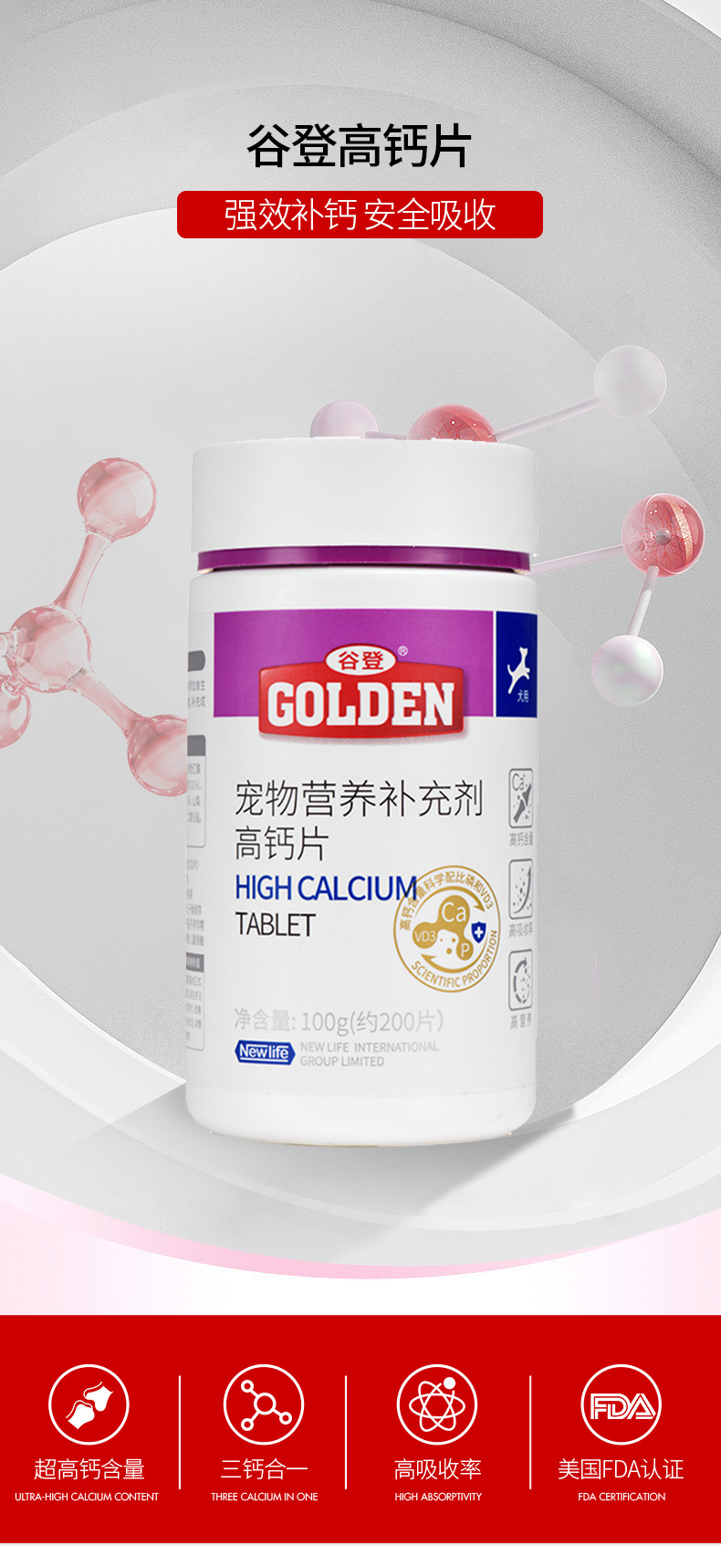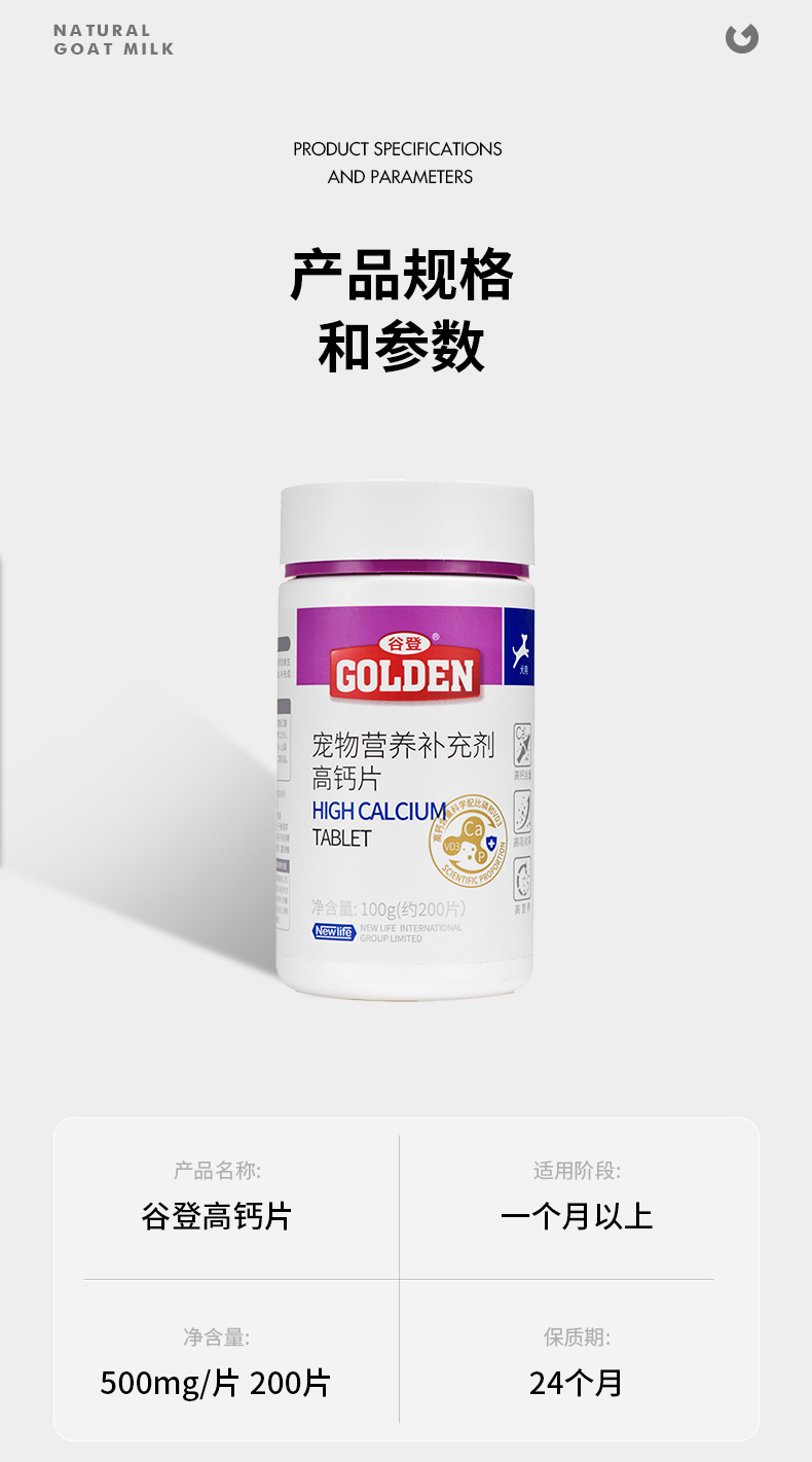 谷登高钙片0.5g/片*200片 (犬猫通用)