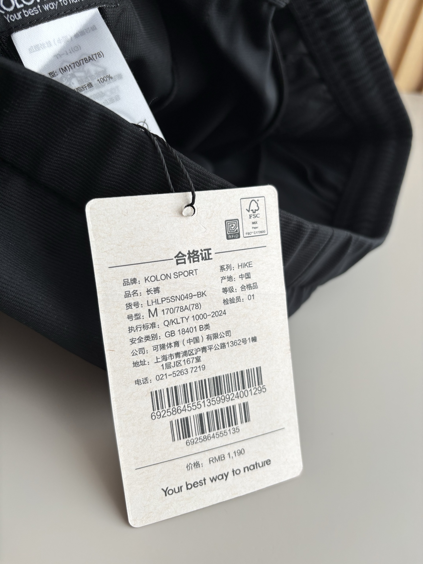 145 货号120961145 ye KOLON SPORT可隆徒步登山男士横纹针织长裤抗菌弹力户外休闲裤