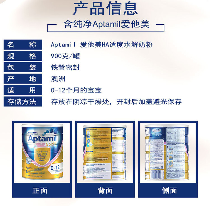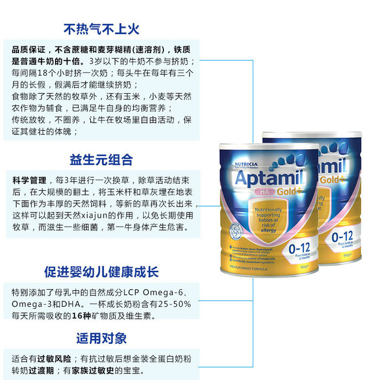 澳洲爱他美HA GOLD+半水解适度水解免敏低敏防抗过敏奶粉0-12个月