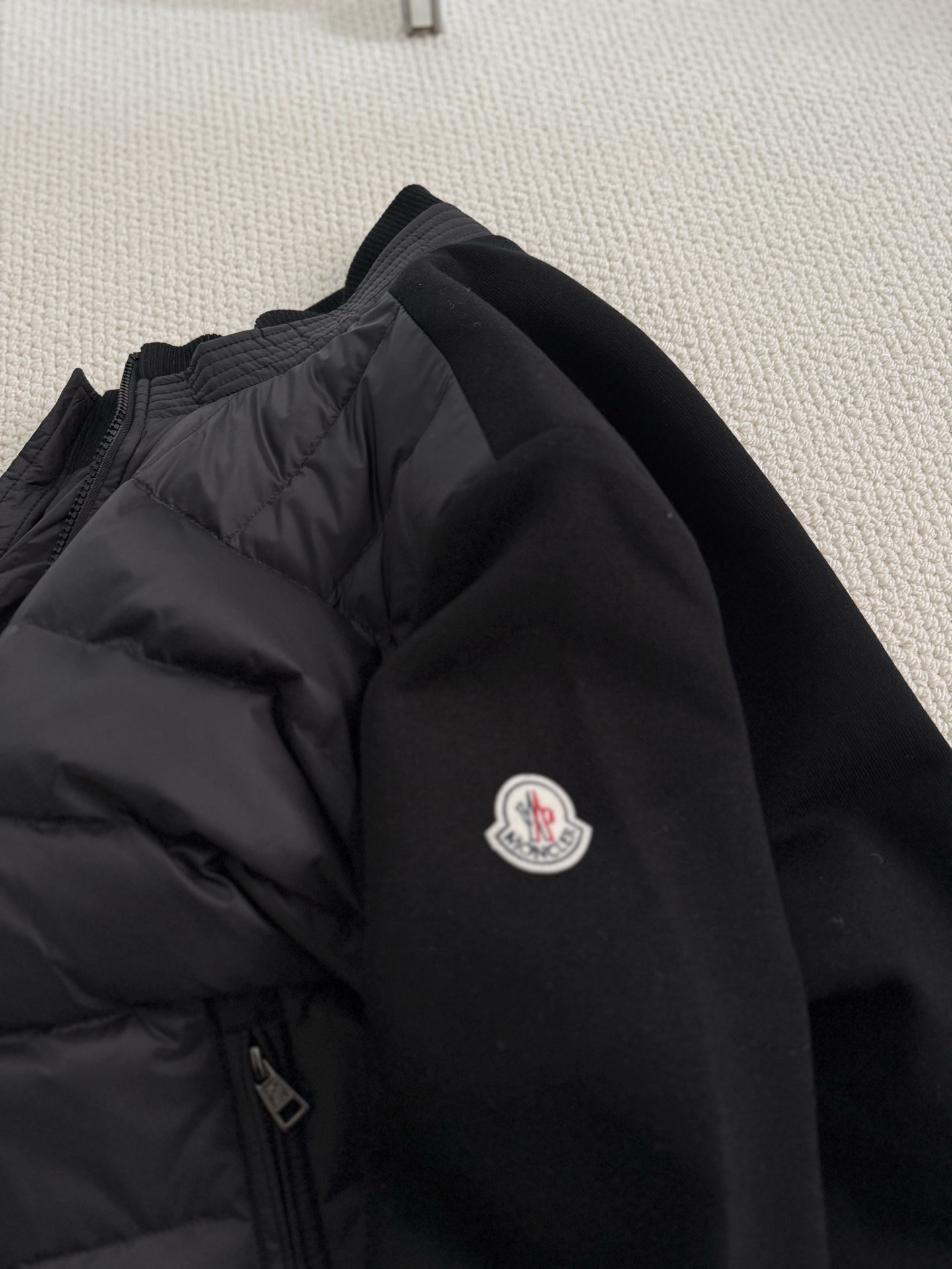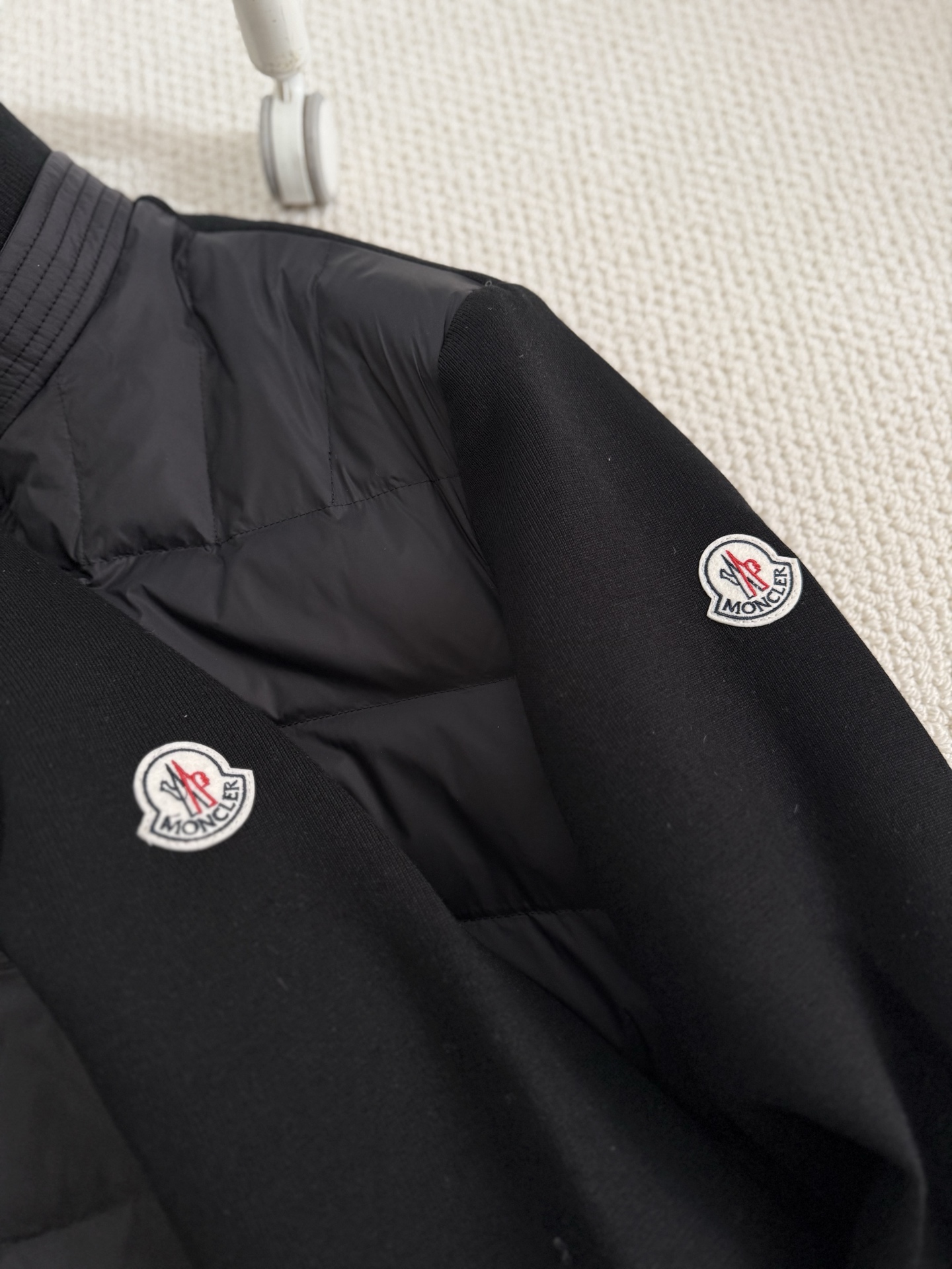 混纺针织面料拼接羽绒设计!含羊毛的料子