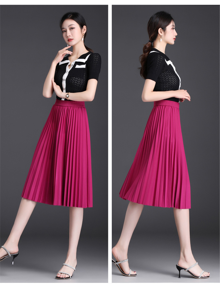 罗马百褶裙高腰a字中长款修身垂感气质半身裙TY2108