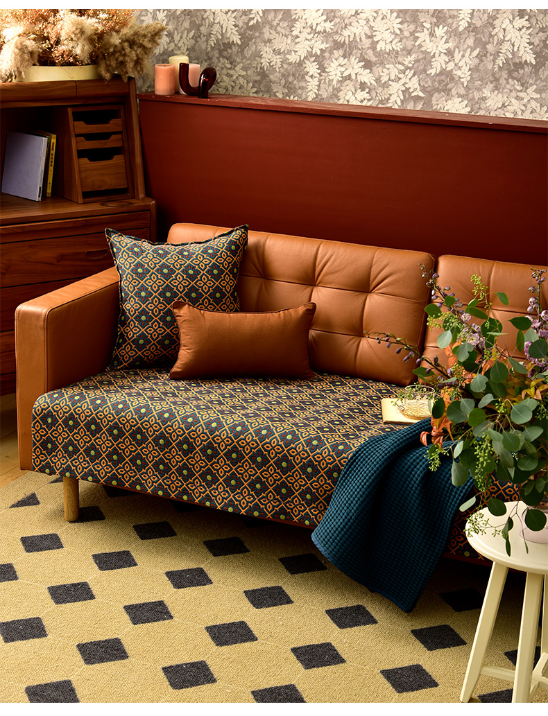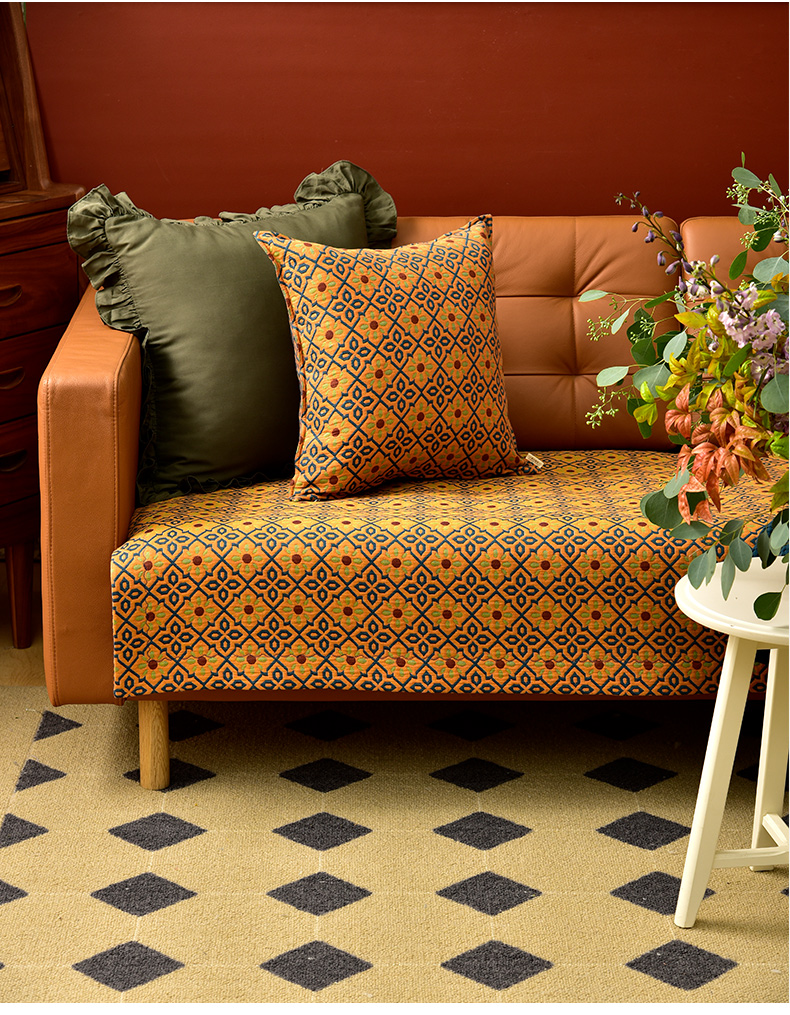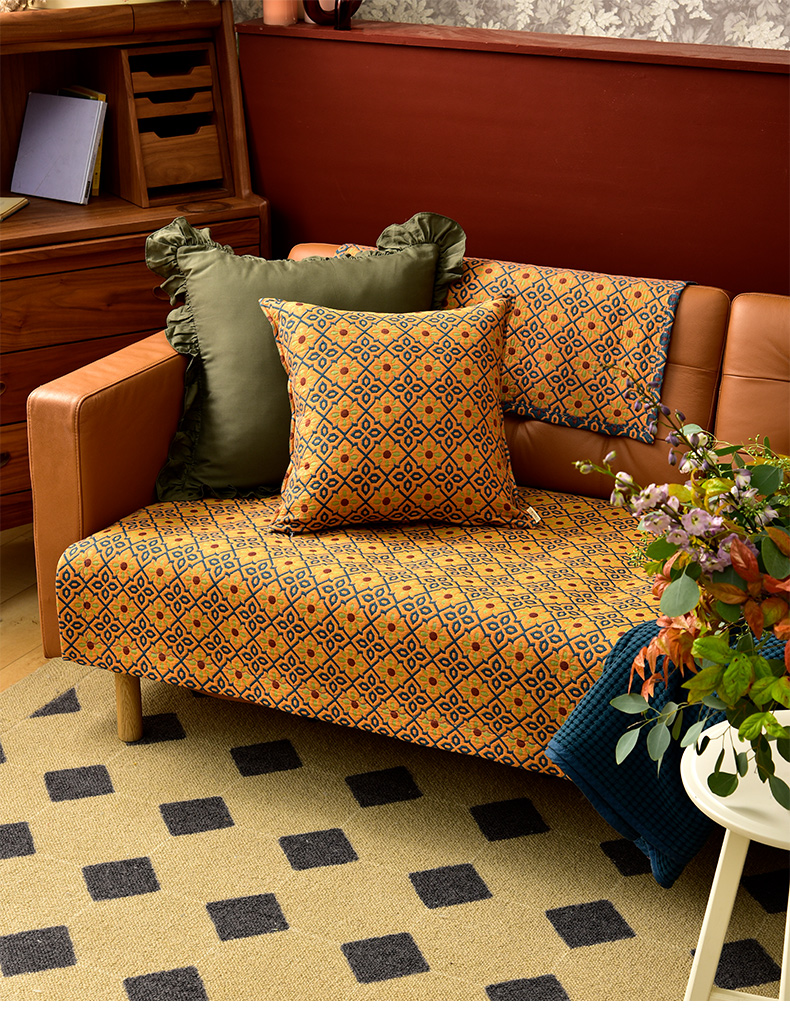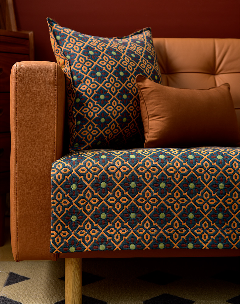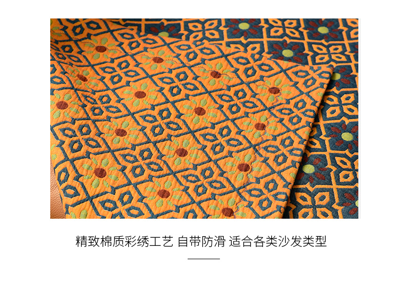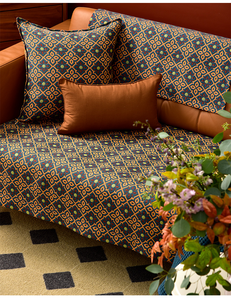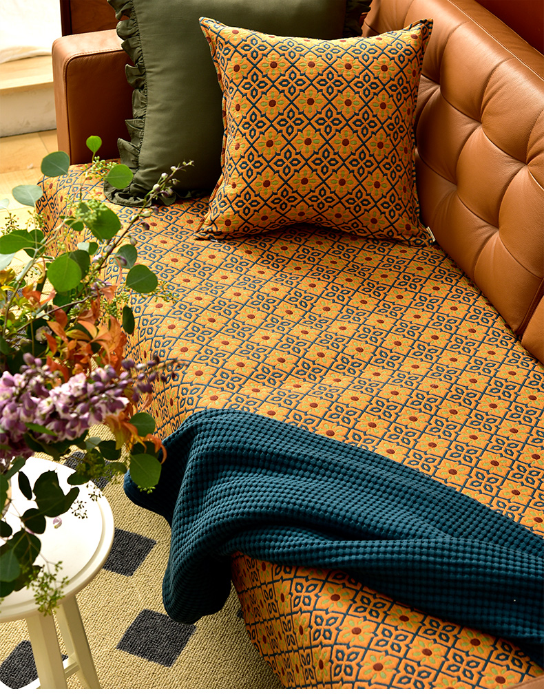 蓝橙菱形双面沙发巾防滑四季通用高级感沙发垫
