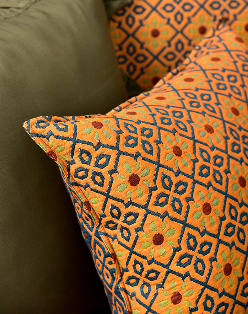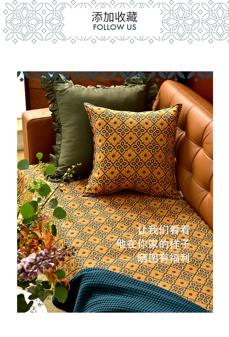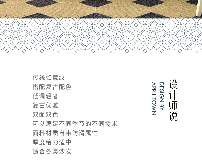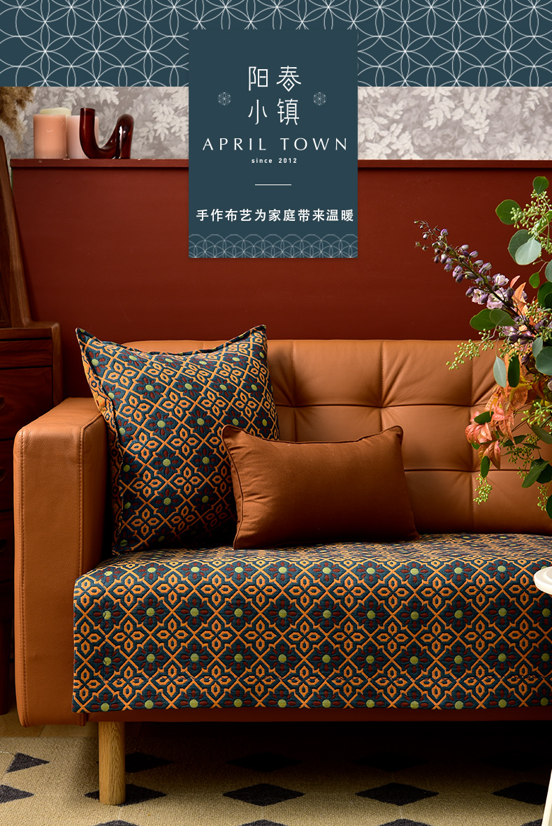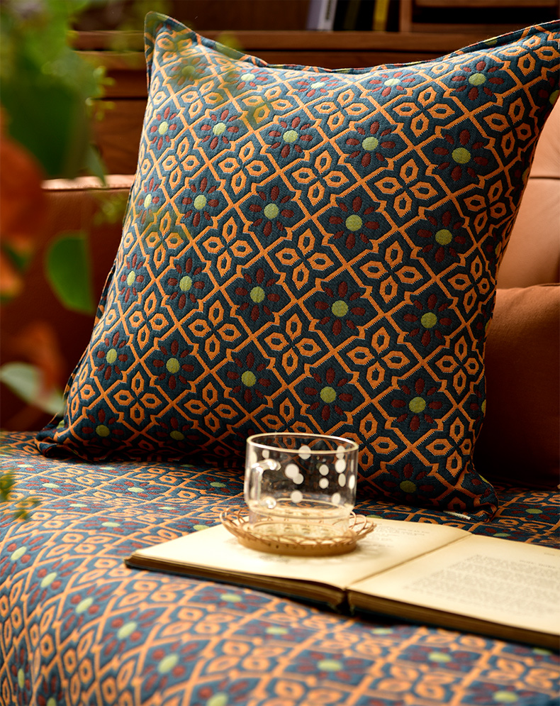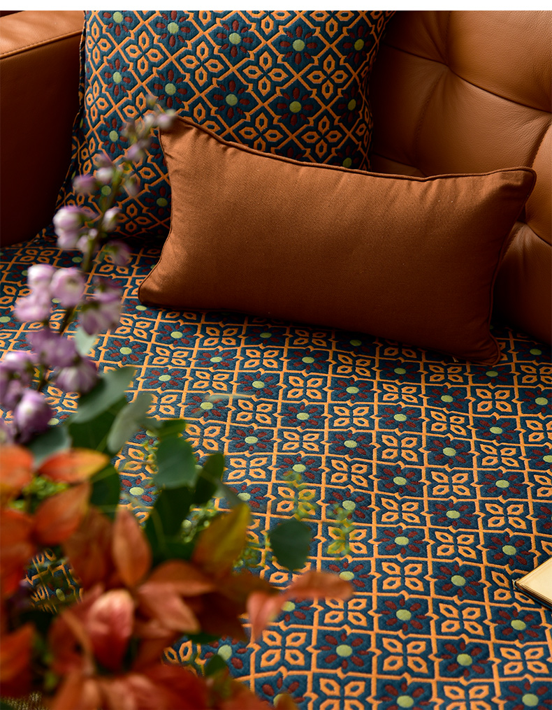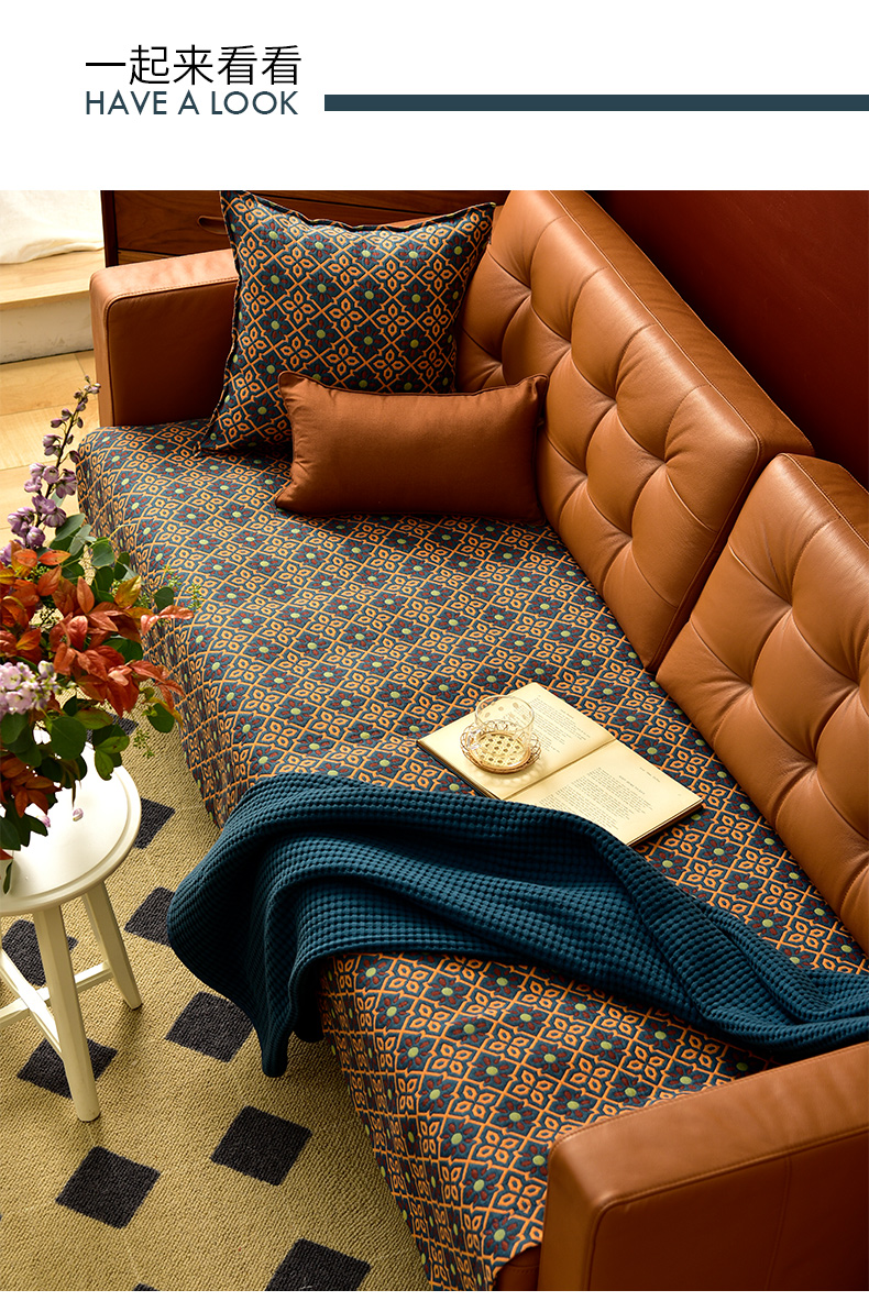 蓝橙菱形双面沙发巾防滑四季通用高级感沙发垫