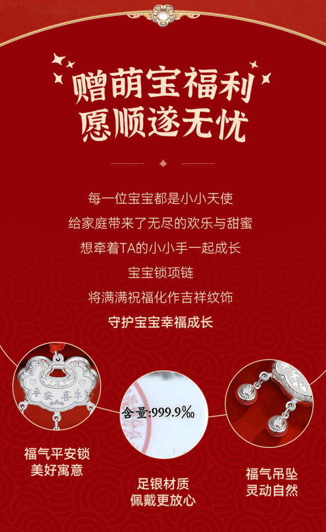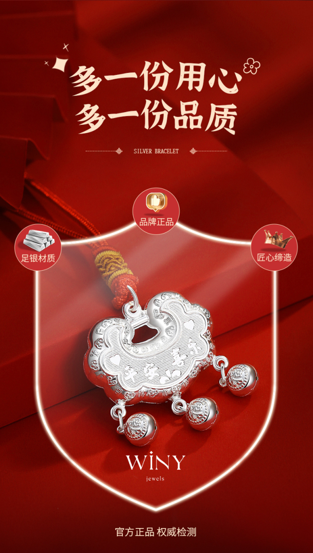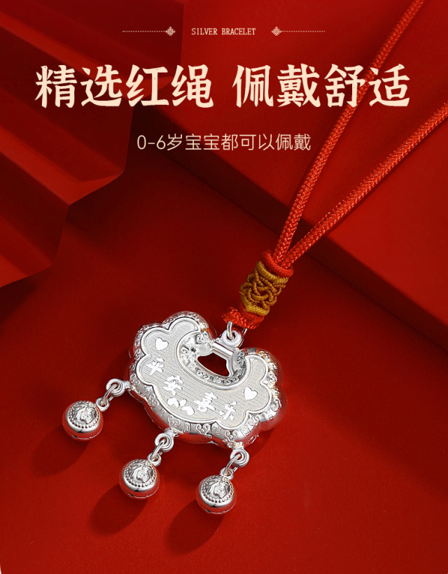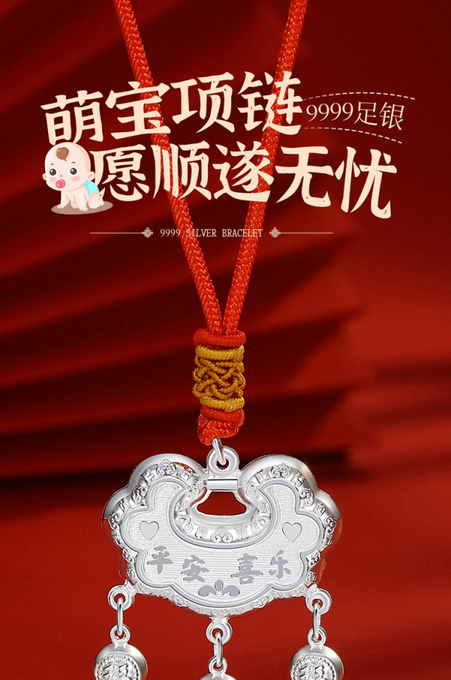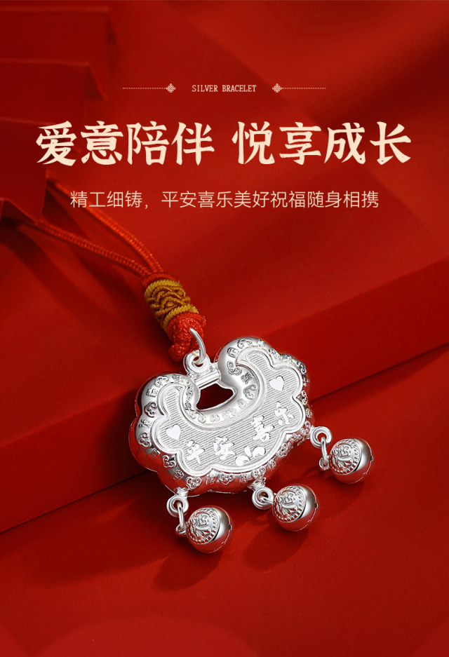 Winy9999足银平安喜乐宝宝锁项链送女友闺蜜节日生日礼物