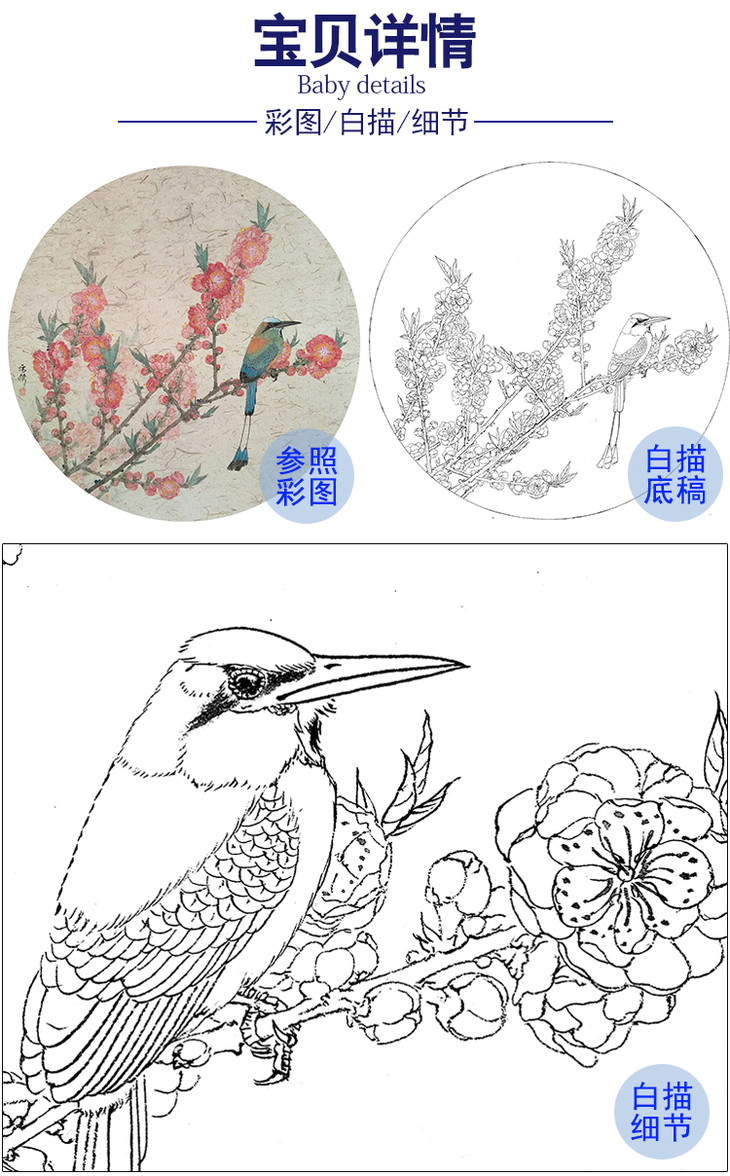 工笔画白描底稿 盘虎杰 圆形花鸟小品 HJ01