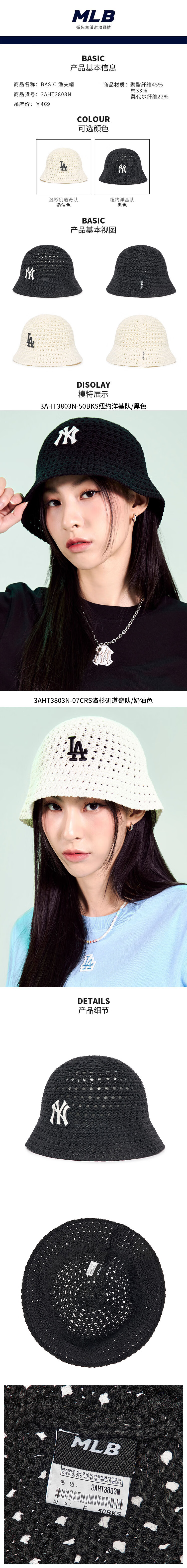 MLB男女同款针织毛线刺绣标渔夫帽3AHT3803N