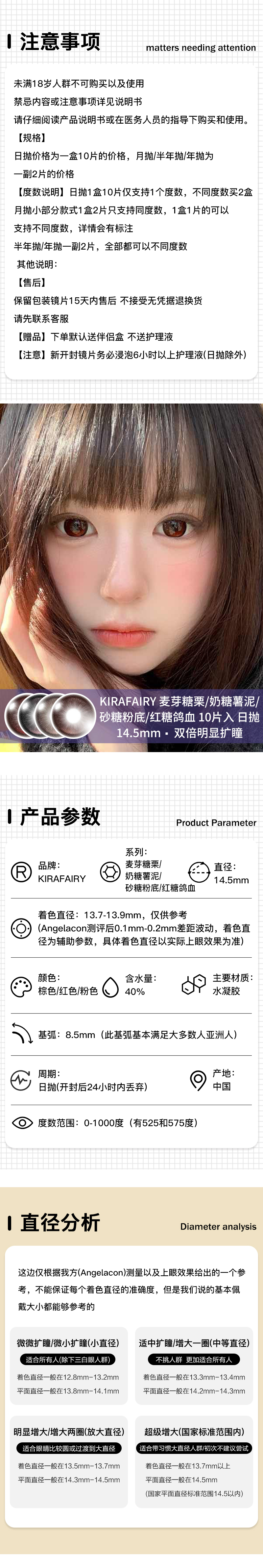 KIRAFAIRY / 麦芽糖栗/奶糖薯泥/砂糖粉底/红糖鸽血 / 10片入 / 日抛 / 无售后 / 14.5mm / 双倍明显扩瞳