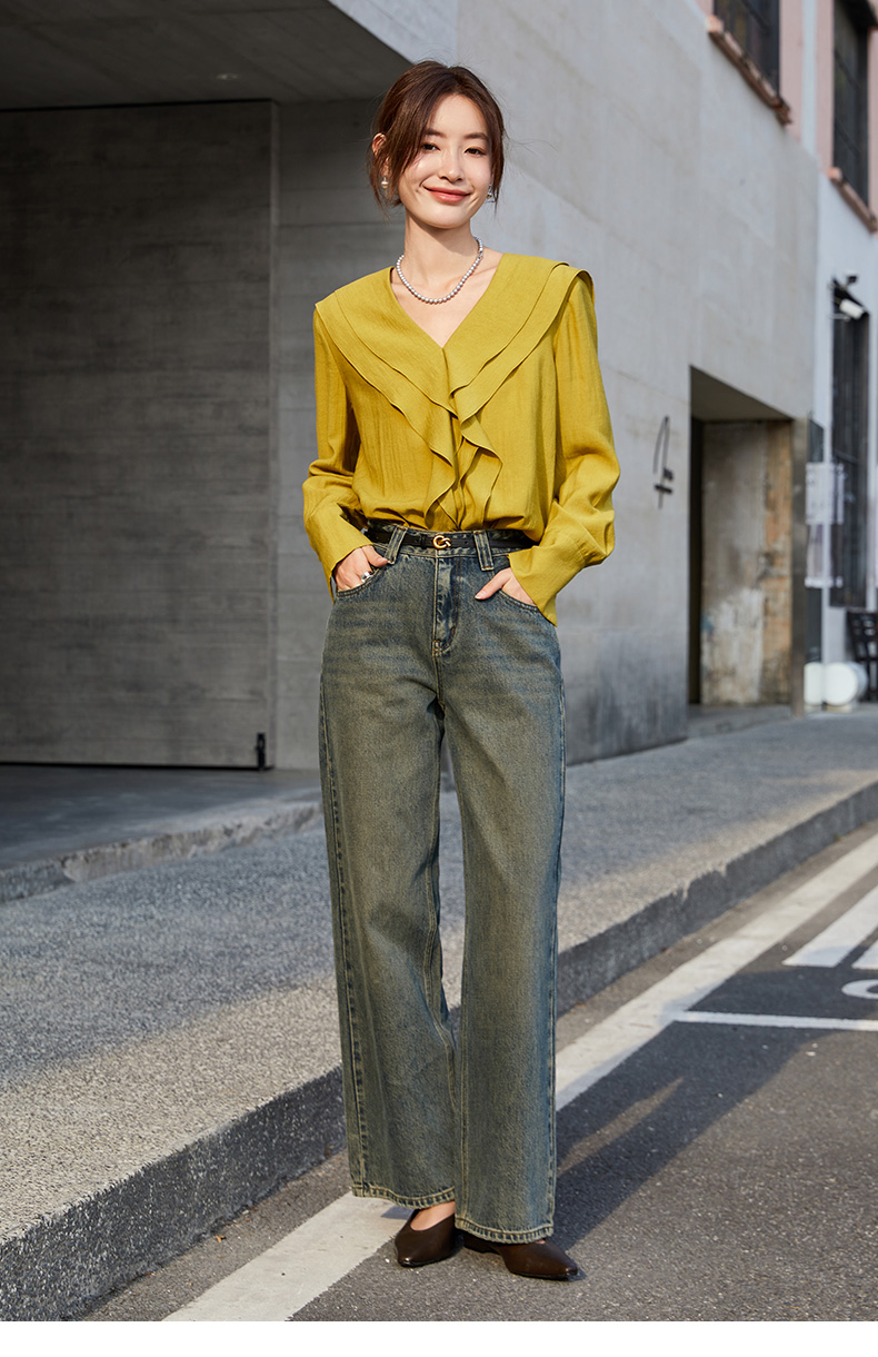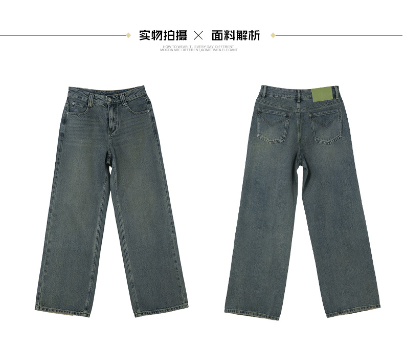 复古蓝高腰阔腿牛仔裤 垂感拖地裤 慵懒休闲 显高显瘦神裤