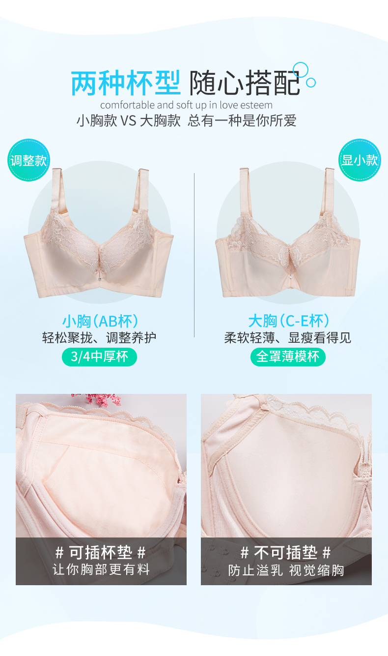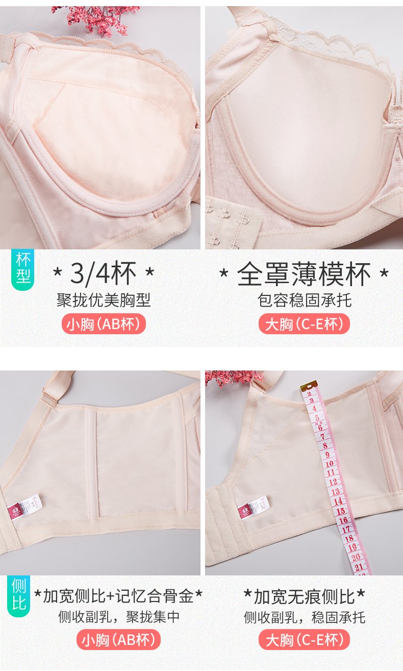 贝佳人大显小文胸美背调整防外扩聚拢收副乳全半包胸罩BW91938