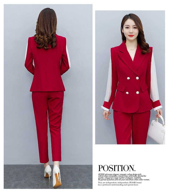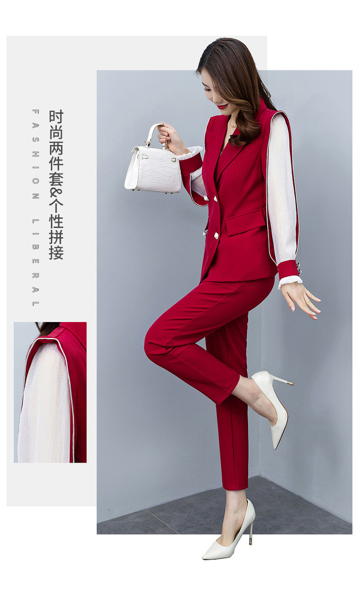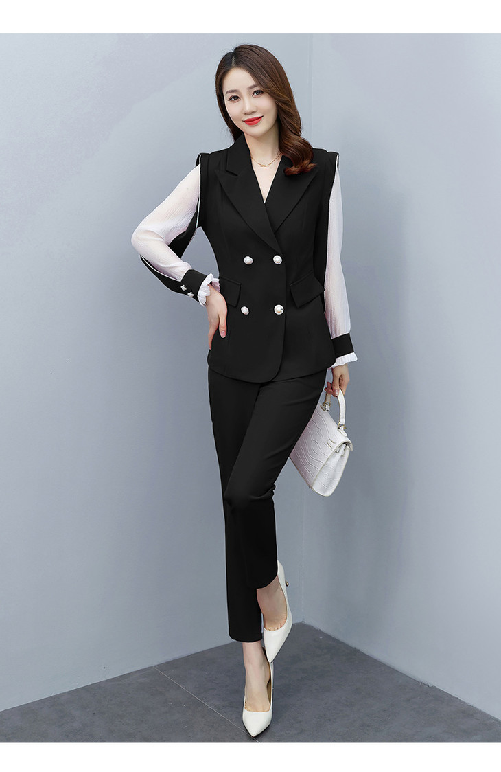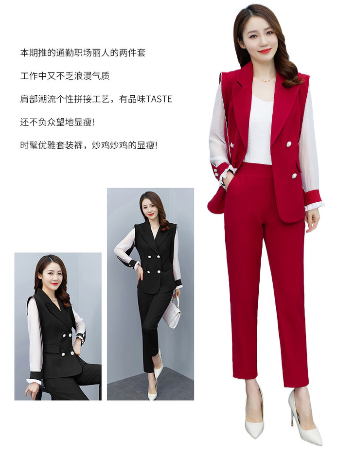 XS-93189套装女2022春季新款休闲气质时尚显瘦大气裤子拼接时髦两件套韩版
