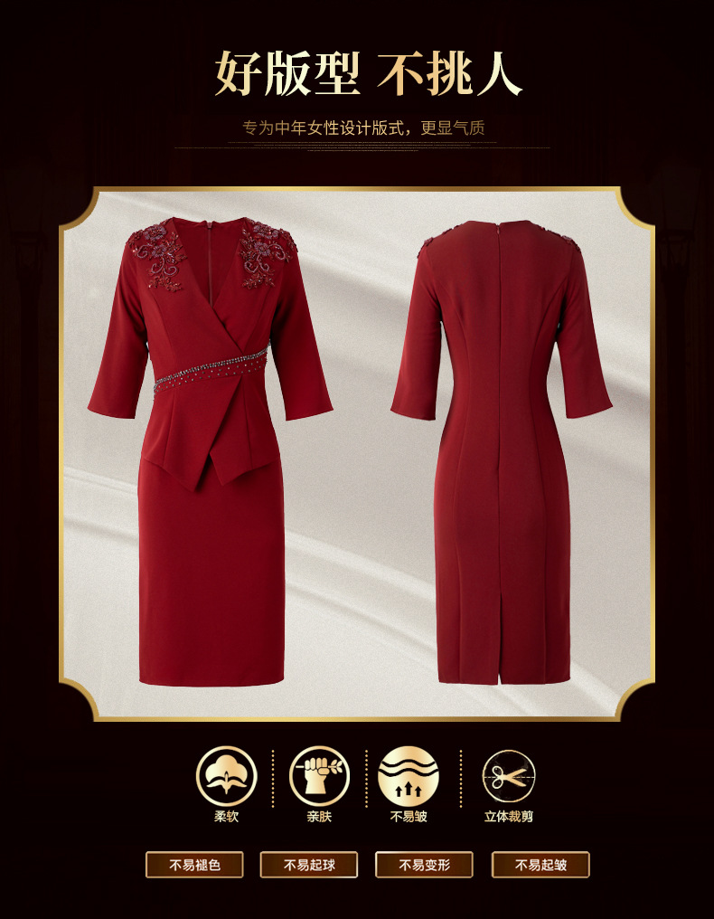 LC-2275秋装新款婚宴礼服优雅遮肚假两件连衣裙喜婆婆高贵时尚裙子