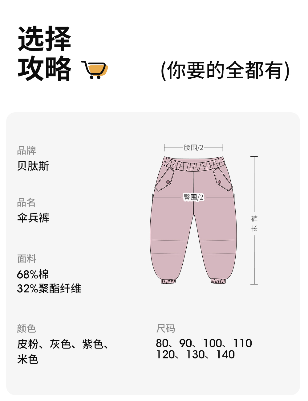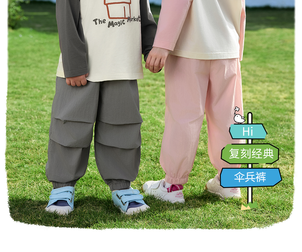 【孕味秒杀专属】贝肽斯儿童伞兵裤子2026新款春秋季长裤男童女童透气工装束脚裤