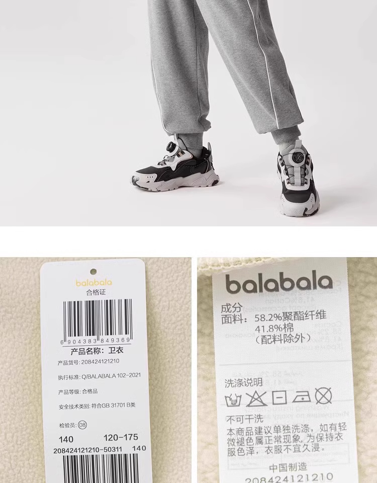 巴拉巴拉童装儿童卫衣男童新款秋冬装女童落肩百搭学院风上衣