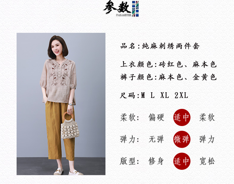 面料成分:上衣: 苎麻100% 裤子: 亚麻100%