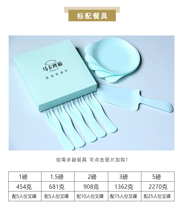 1磅/6寸 配5人份餐具; 2磅/8寸 配10人份餐具; 3磅/10寸 配15人份餐具;