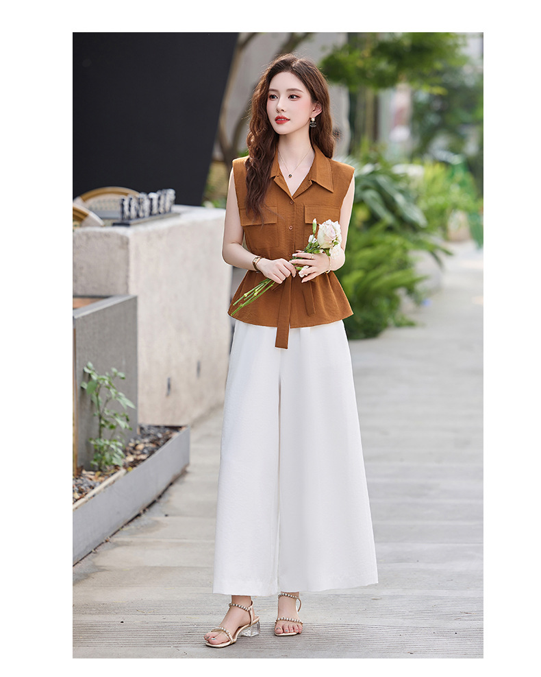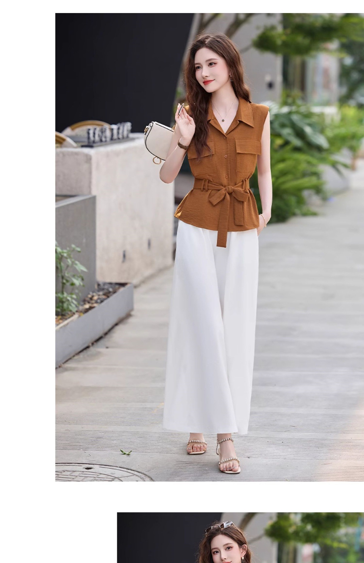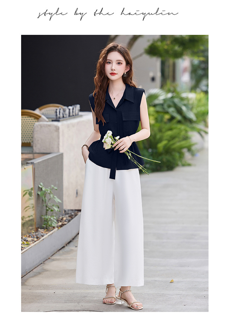 无袖上衣阔腿裤两件套,时尚气质通勤洋气减龄穿搭套装HR-XXM826-0