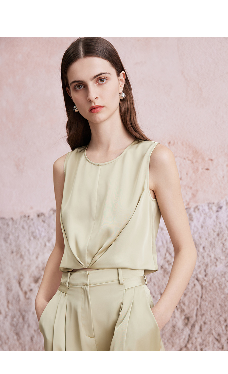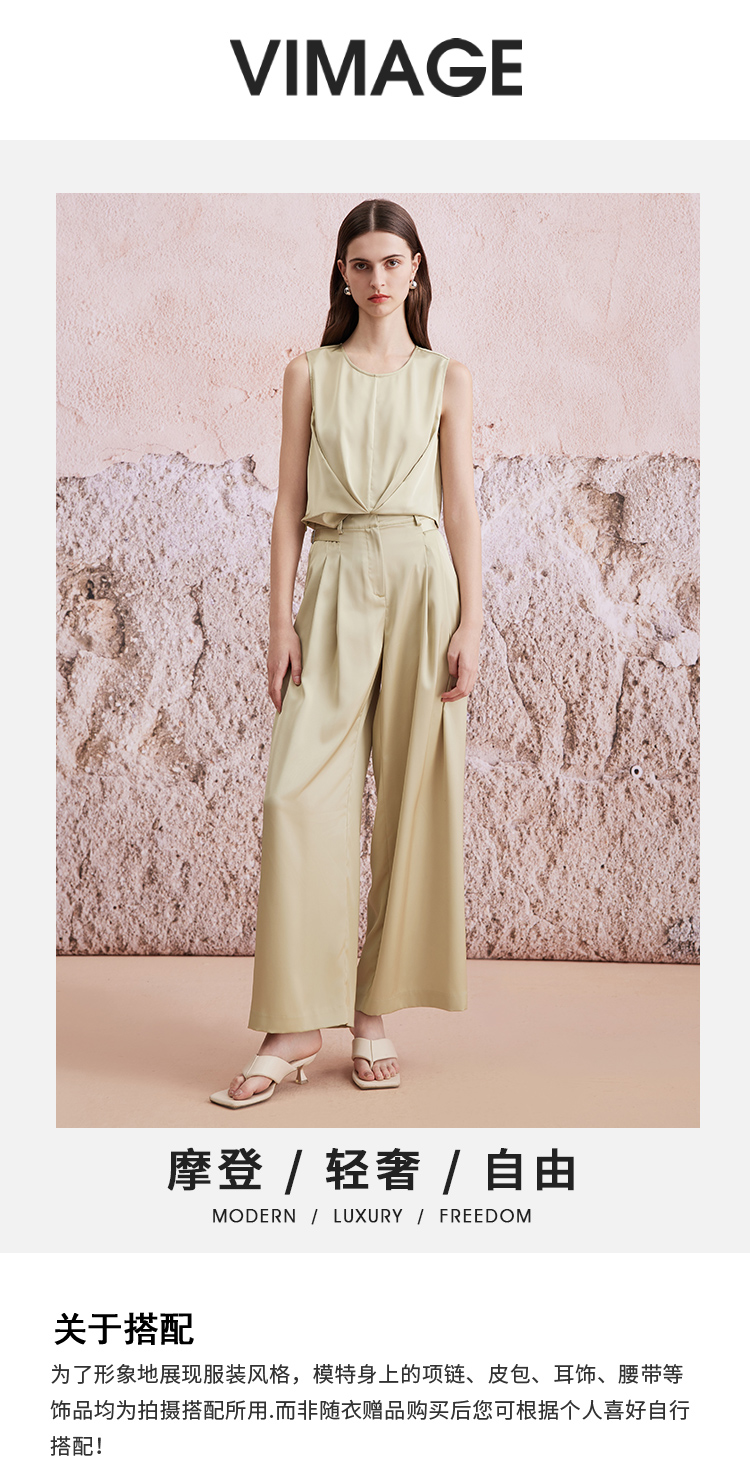 VIMAGE纬漫纪夏季新款显瘦舒适简约短款无袖上衣V2113714
