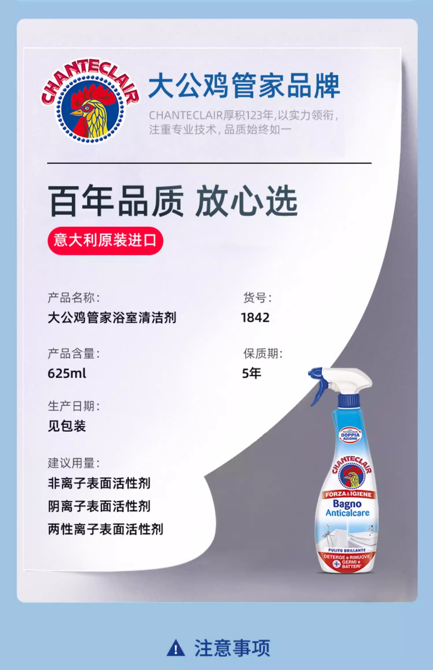 CHANTE CLAIR 大公鸡管家 天然植物配方浴室清洁剂 625ml