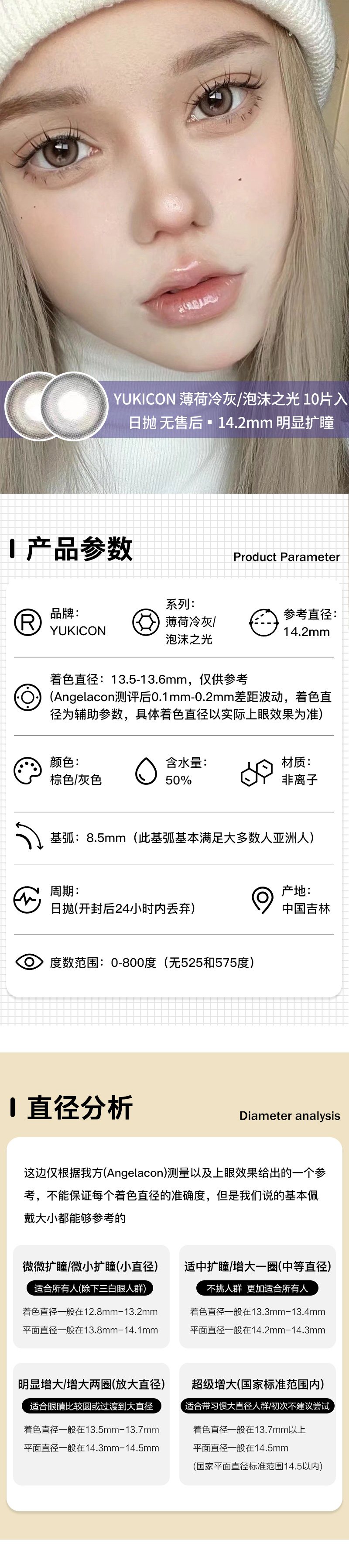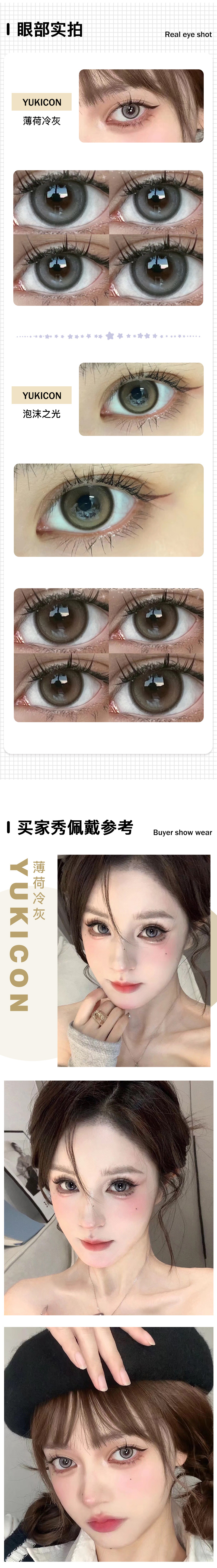 Yukicon / 薄荷冷灰/泡沫之光 / 美瞳日抛 / 10片入 / 无售后 / 14.2mm / 明显扩瞳融瞳提亮轻混血