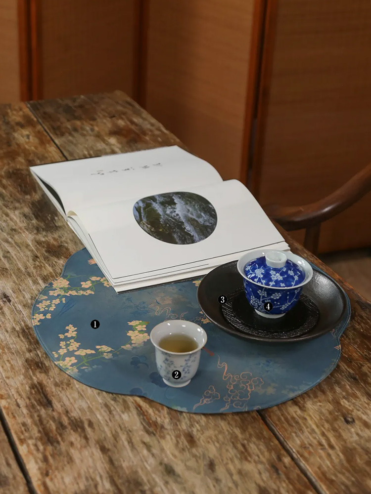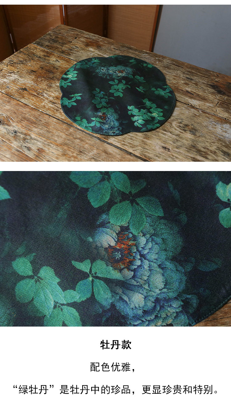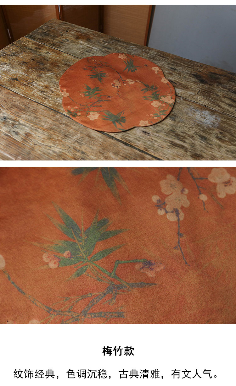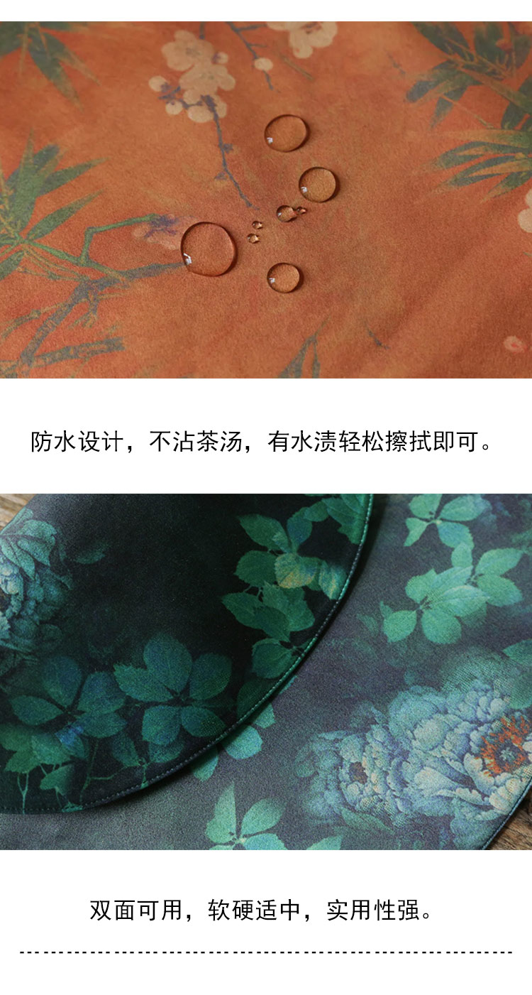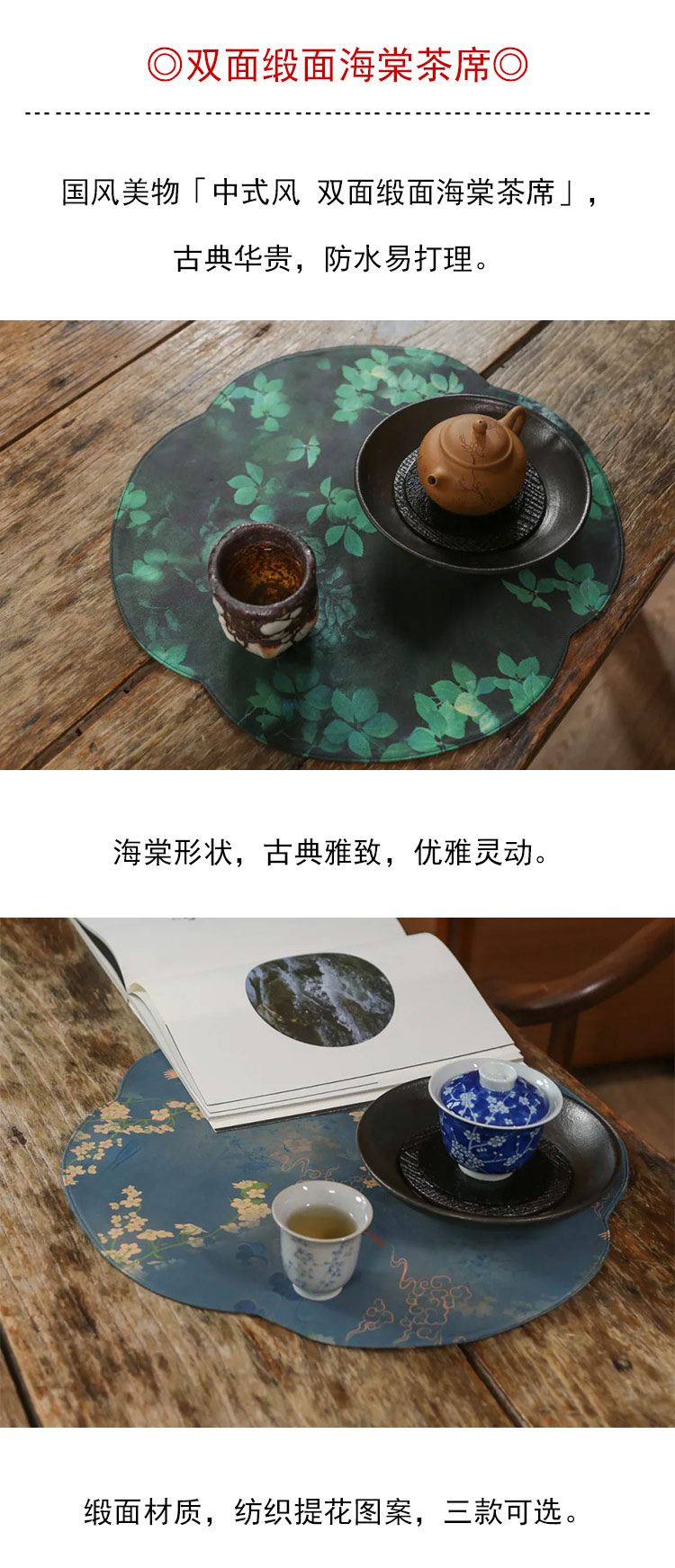 茶香记 中式风 双面缎面海棠茶席 梅竹 云鹤 牡丹 茶席布茶道零配 古典优雅
