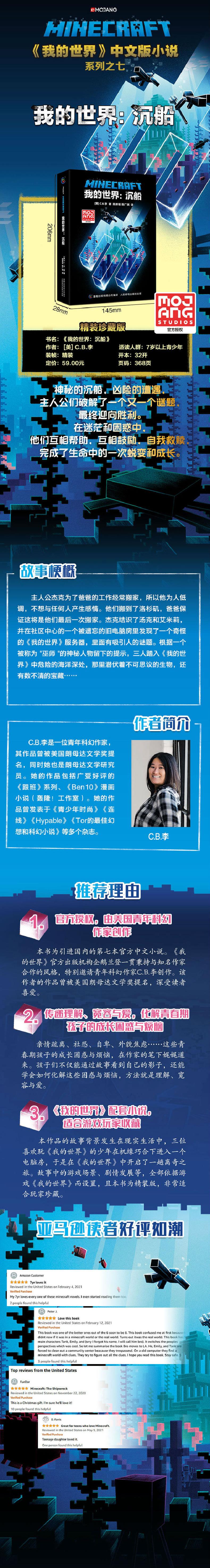 本书为引进国内的第七本官方中文小说。《我的世界》官方出版机构企鹅兰登一贯秉持与知名作家合作的风格,特别邀请青年科幻作家C.B.李创作。该作者的作品曾被将美国朗母达文学奖提名,深受读者喜爱。