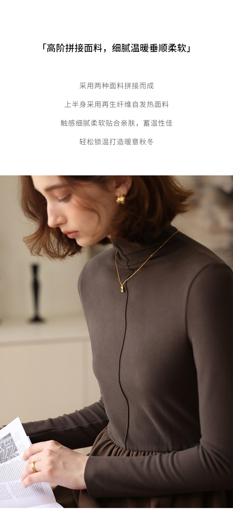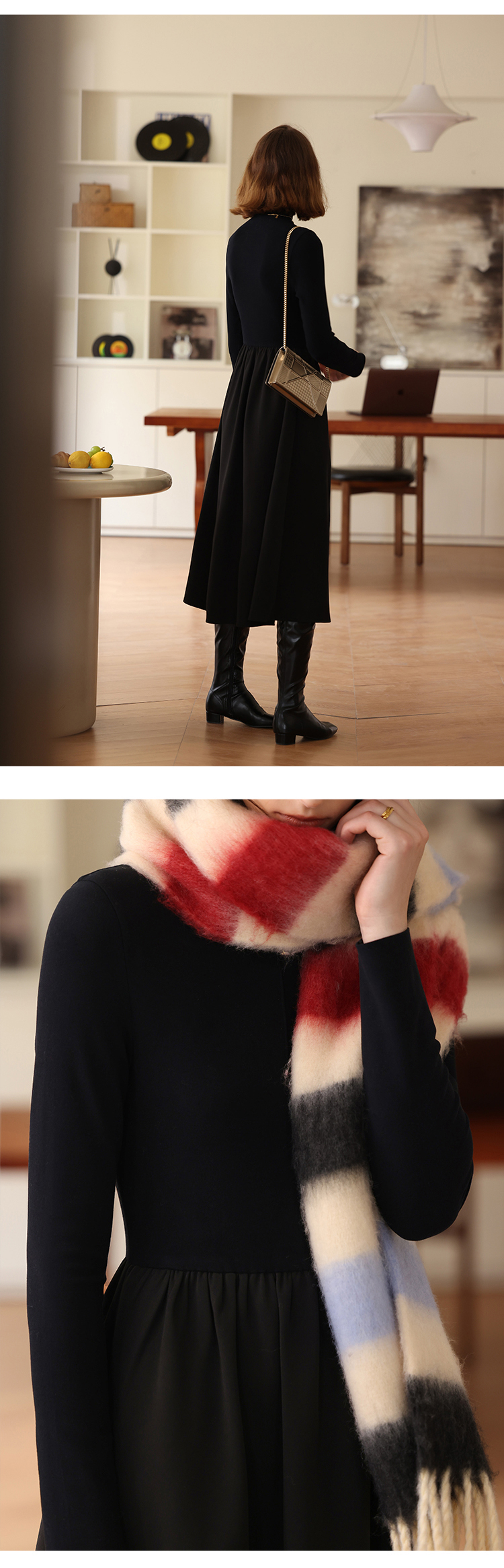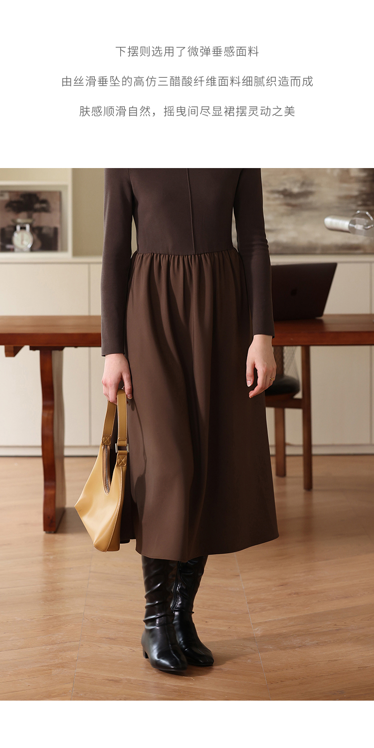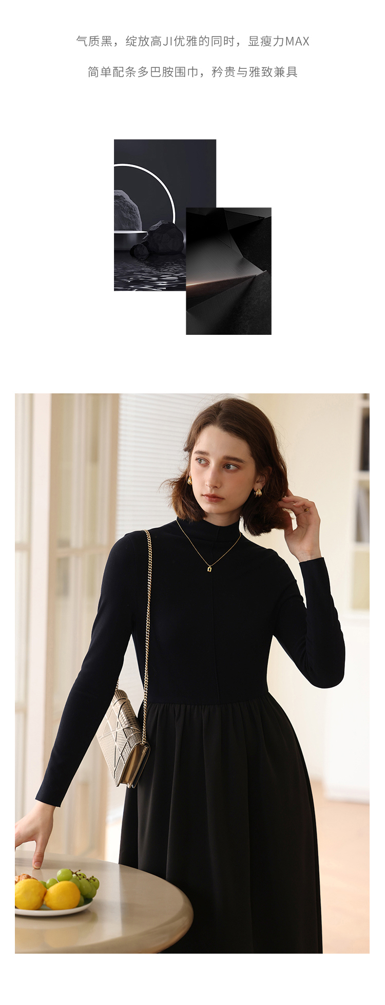 HeyDress法式半高领洋装女秋冬复古修身收腰a字伞裙长裙子