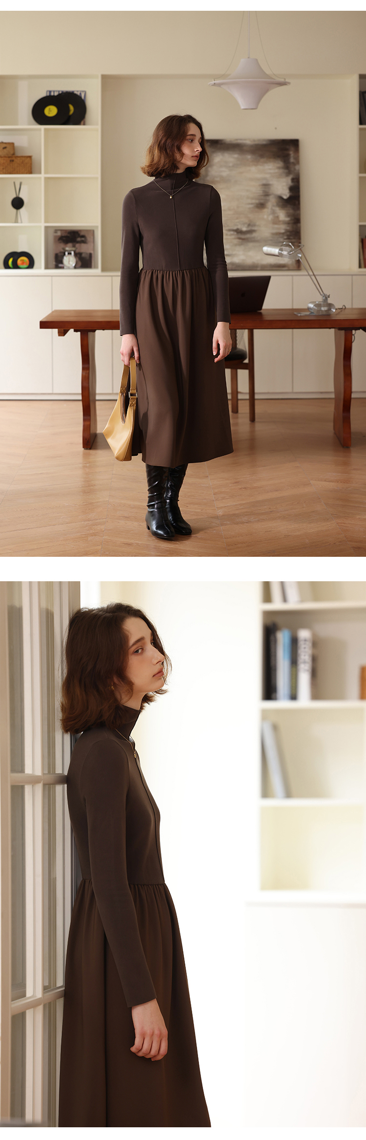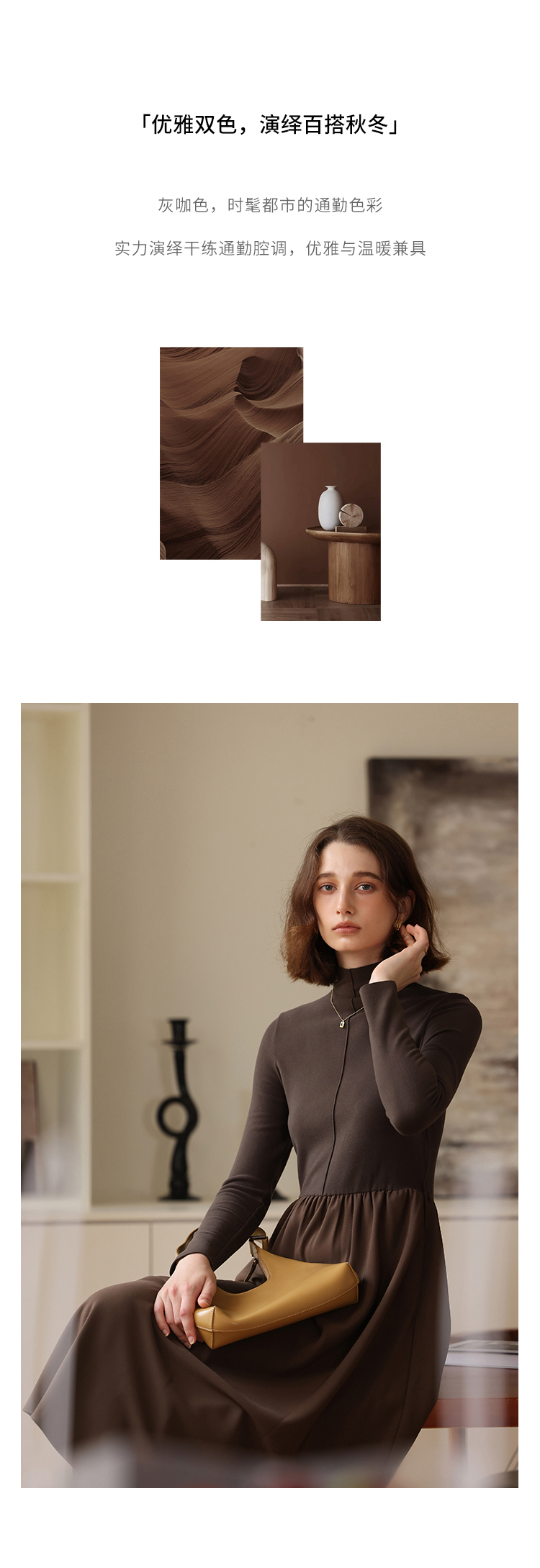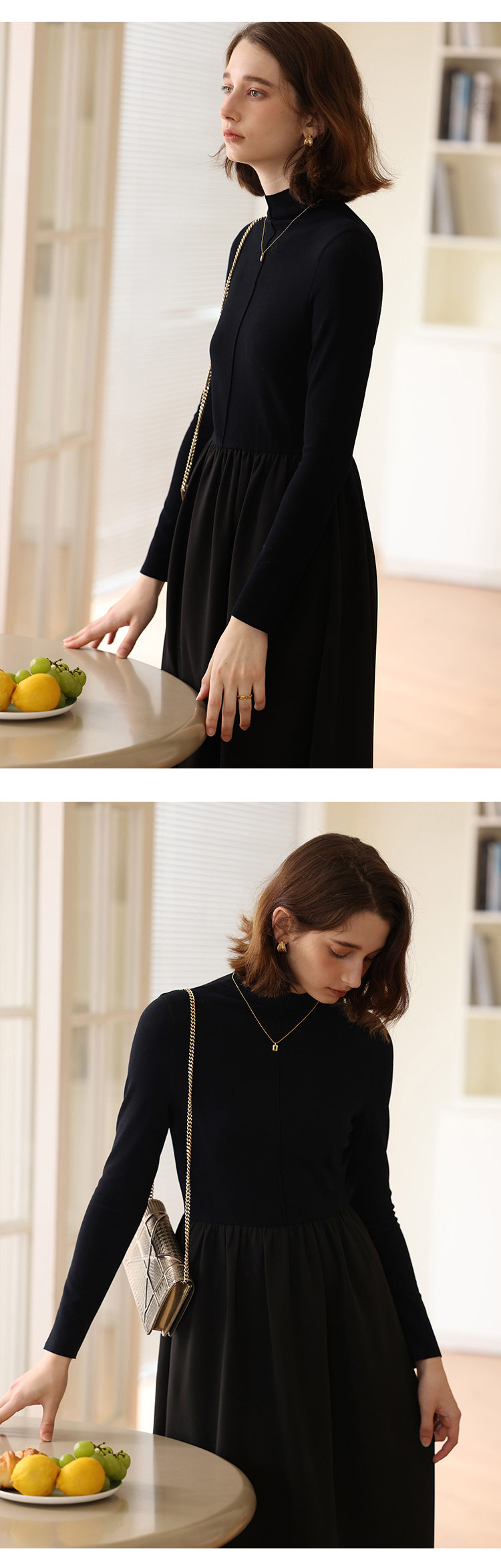 HeyDress法式半高领洋装女秋冬复古修身收腰a字伞裙长裙子