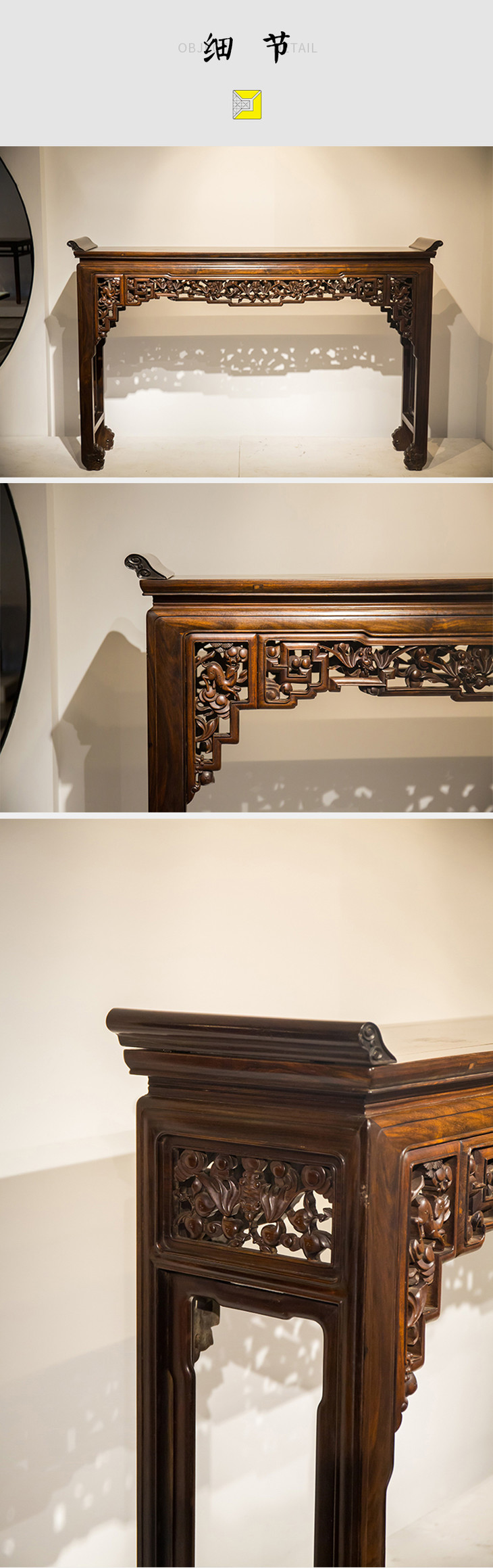 清早期 黄花梨束腰三弯腿螭龙纹带铜包角炕桌